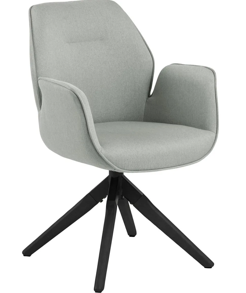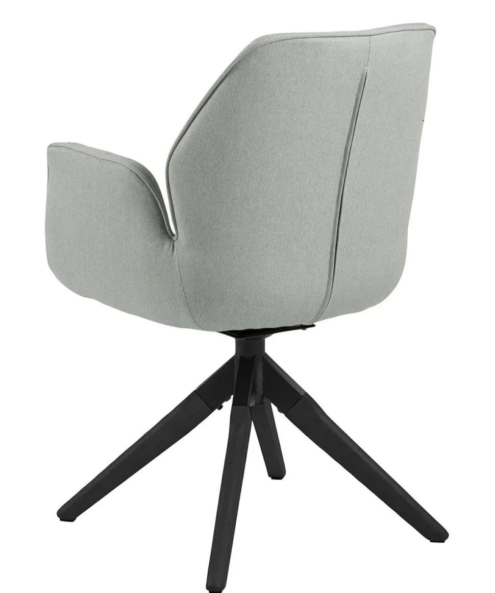 Krzesło obrotowe Aura to kwintesencja stylu skandynawskiego. Sprawdzi się w salonie, gabinecie czy sypialni. Obite przyjemną w dotyku i łatwą do utrzymania w czystości tkaniną Town w kolorze jasnej szarości pomoże Ci stworzyć elegancką i jednocześnie przytulną aranżację. Krzesło jest wyjątkowo szerokie, rozłożysty kształt zapewnia pełen komfort użytkowania. Oparcie oraz podłokietniki są specjalnie wyprofilowane, by korzystanie z nich było jak najwygodniejsze. Pod spodem siedziska znajduje się metalowy mechanizm, dzięki któremu krzesło może się obracać. Cztery nogi z drewna kauczukowego w kolorze czarnym wychodzą z jednego punktu. Rozchodzą się na boki pod lekkim kątem, dzięki czemu krzesło jest w pełni stabilne. Aura jest wygodna, praktyczna i stylowa. Będzie wyglądać doskonale w prostych, minimalistycznych wnętrzach.