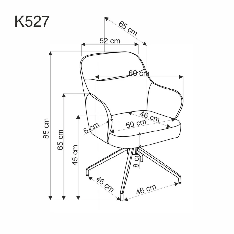 - Wymiary krzesła to 60/65/85/45 cm, dzięki czemu idealnie dopasuje się do różnych pomieszczeń.