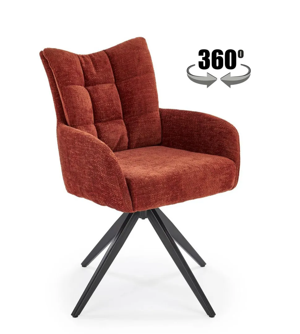 Przedstawiamy Państwu krzesło obrotowe Dahlia, które łączy w sobie wygodę i funkcjonalność. Wykonane z wysokiej jakości tkaniny HAGA, jest nie tylko przyjemne w dotyku, ale również łatwe w utrzymaniu czystości. Kolor cynamonowy dodaje mu elegancji i oryginalności. Wyposażone jest w funkcję obracania o 360 stopni, co zwiększa jego funkcjonalność i pozwala na swobodne poruszanie się w różnych kierunkach bez konieczności wstawania.