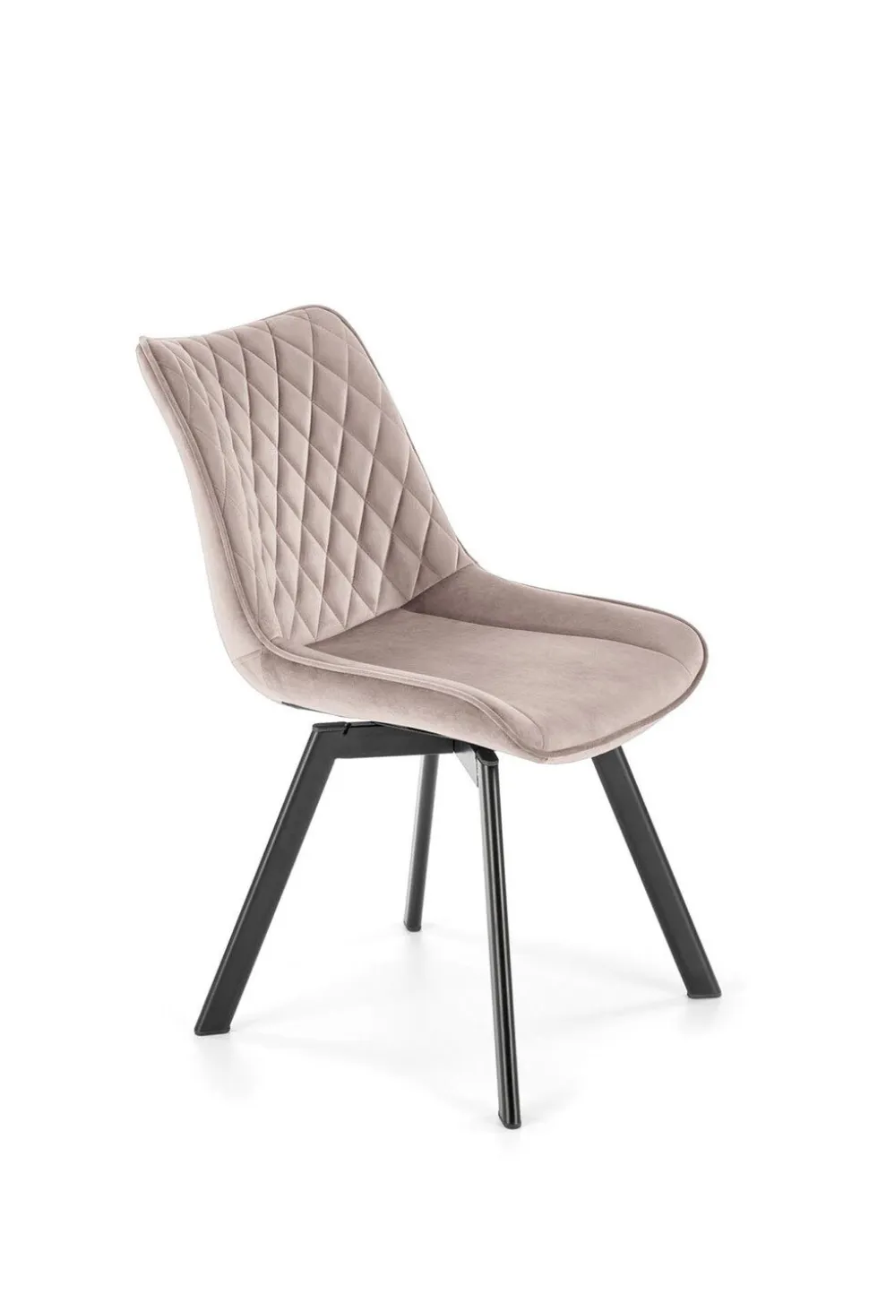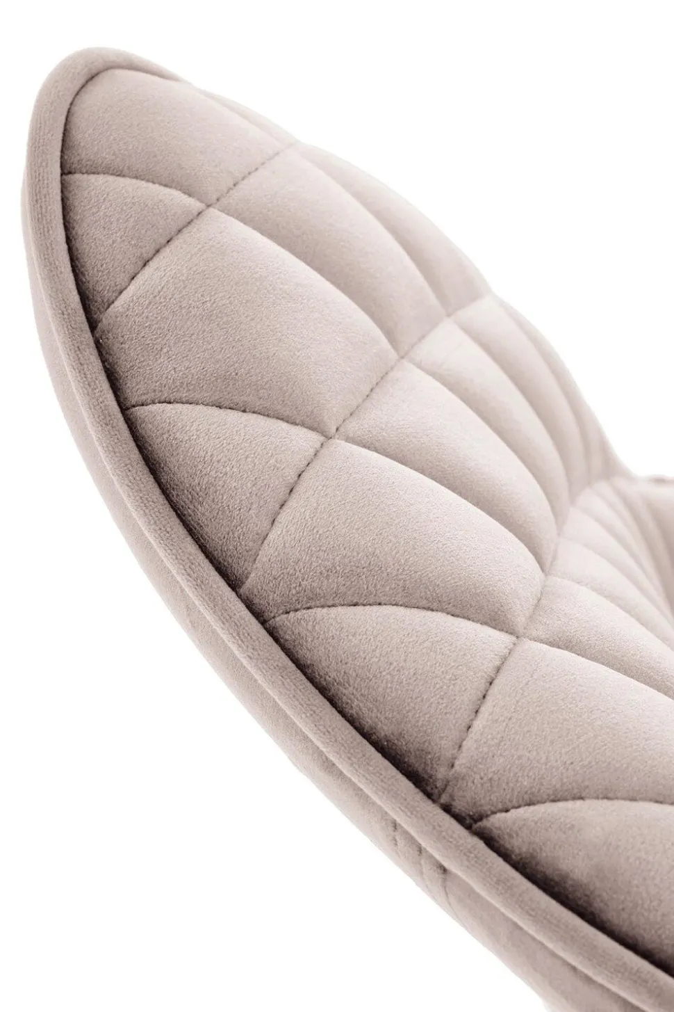 - Beżowa tkanina velvet z przeszyciami nadaje krzesłu luksusowy i wyrafinowany wygląd