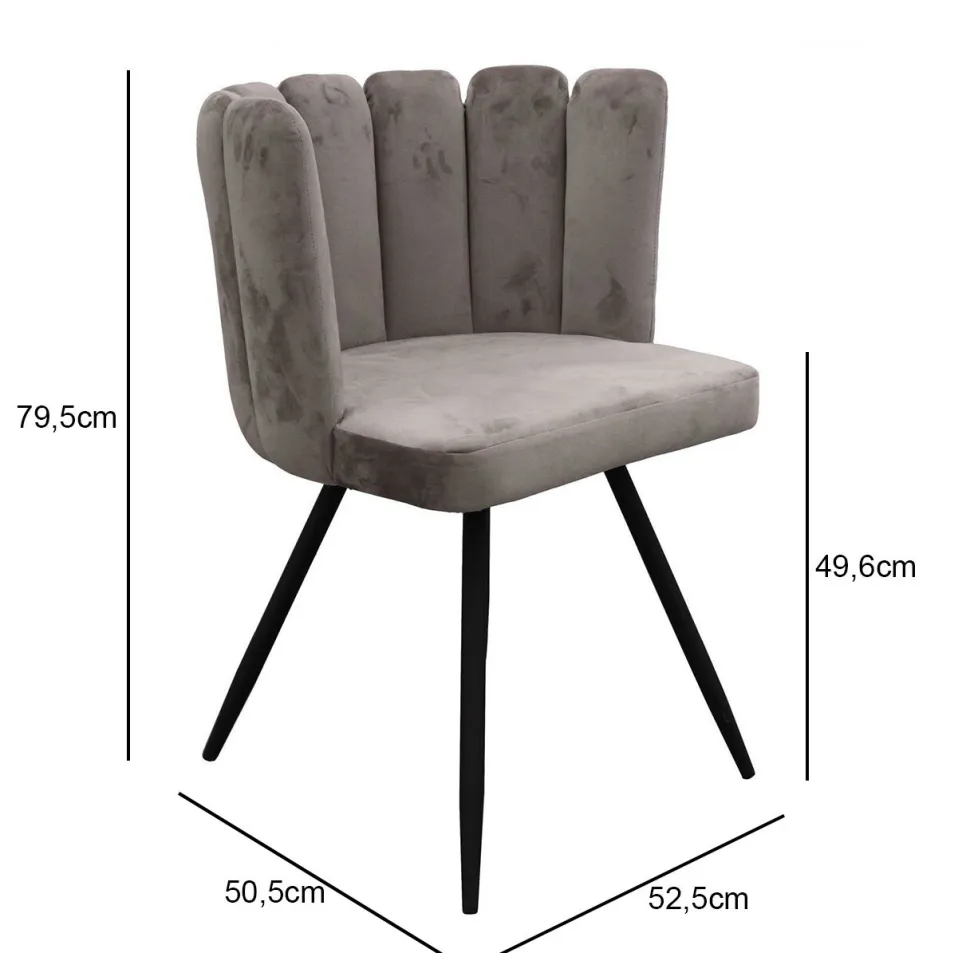 Krzesło zostało obite niezwykle miękką i modną tkaniną welurową. Aksamitne wykończenie dostępne jest w dwóch wersjach kolorystycznych, szarym oraz delikatnym różu. Podstawa to czarne i smukłe metalowe nogi, rozszerzające się na zewnątrz. To idealny balans i kontrast materiałów. Nogi dodatkowo zakończone zostały stopkami z tworzywa, które zapobiegają rysowaniu się podłoża. Niewątpliwym atutem krzesła jest fakt, że jego siedzisko umieszczono na wysokości 49 cm, co sprawia, że Paum VIC to doskonałe krzesło dla wysokich osób. Model ten ozdobi każdą jadalnię, sypialnię czy salon oraz w bardzo wyszukany sposób skomponuje się z każdym rodzajem mebli.