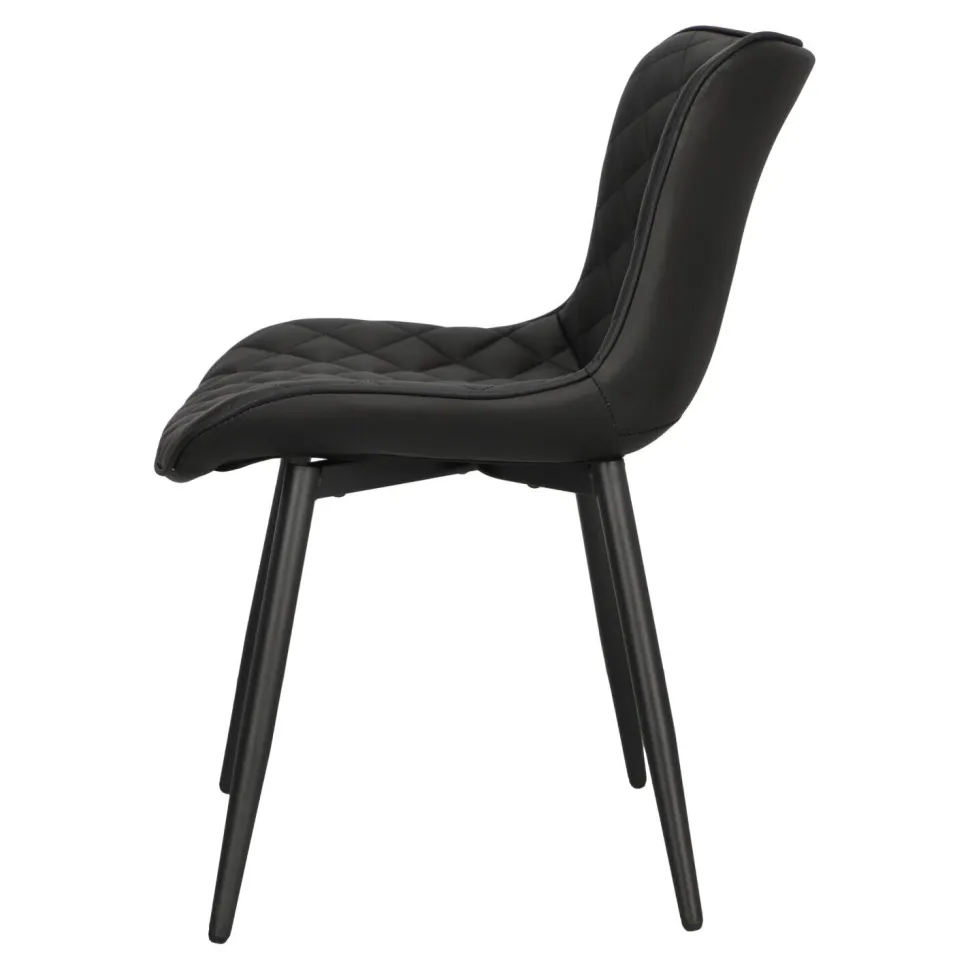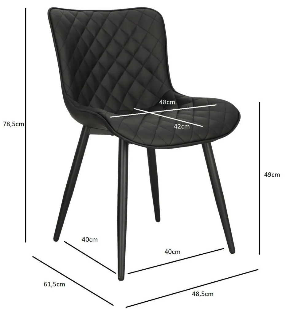 Wykonane z dbałością o detale, krzesło posiada metalową, malowaną proszkowo podstawę, która zapewnia stabilność i trwałość. Cztery solidne nogi zakończone stopkami z tworzywa gwarantują bezpieczne użytkowanie na różnych rodzajach podłóg. Największym atutem krzesła Roxino jest jego siedzisko i oparcie, które tworzą jeden profilowany element. Pokryte miękką pianką tapicerską oraz ekologiczną, czarną skórą, zapewniają nie tylko wygodę, ale również dodają elegancji i stylu. Przeszycia na powierzchni krzesła nadają mu niesztampowego wyglądu, pomimo których, tkanina jest łatwa w czyszczeniu. Dzięki temu krzesło Roxino będzie wyglądać zawsze świetnie, nawet po intensywnym użytkowaniu.