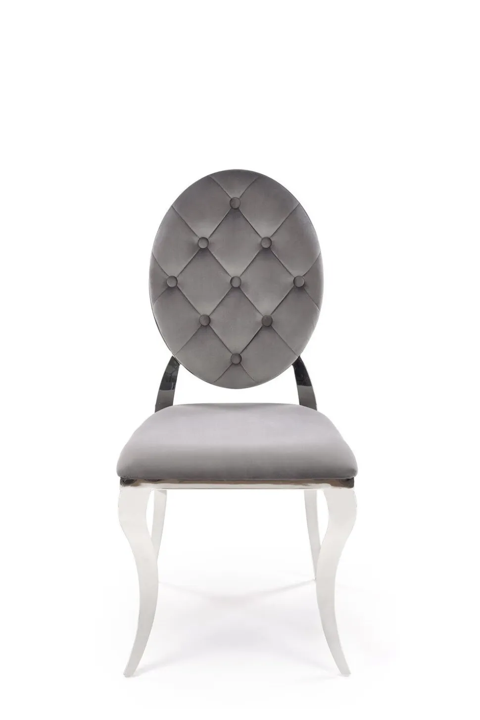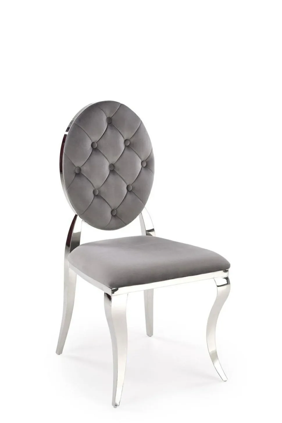 Przedstawiamy wyjątkowe krzesło Royale w odcieniu szarym i srebrnym, które swoim stylem nawiązuje do tradycji ludwikowskiej, ale z nowoczesnym twistem. Wykonane z miękkiej i przyjemnej w dotyku tkaniny welwetowej, gwarantuje komfort podczas długich spotkań przy stole. Szare siedzisko kontrastuje z srebrnymi nogami, co nadaje krzesłu eleganckiego i glamour looku. Krzesło idealnie wpasuje się w każdą jadalnię, salon, ale także restaurację czy kawiarnię.