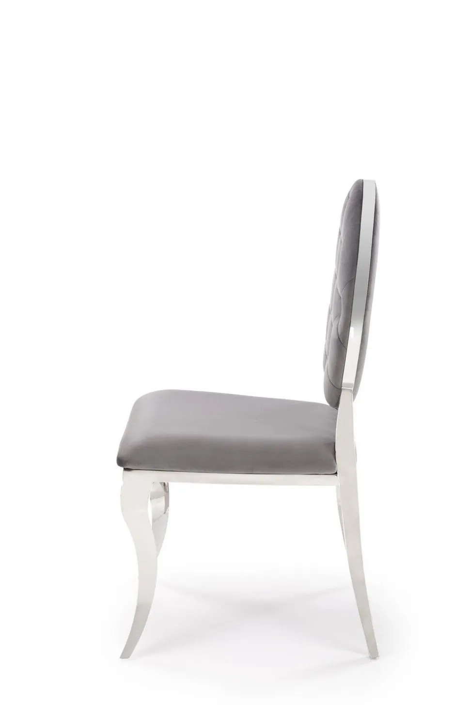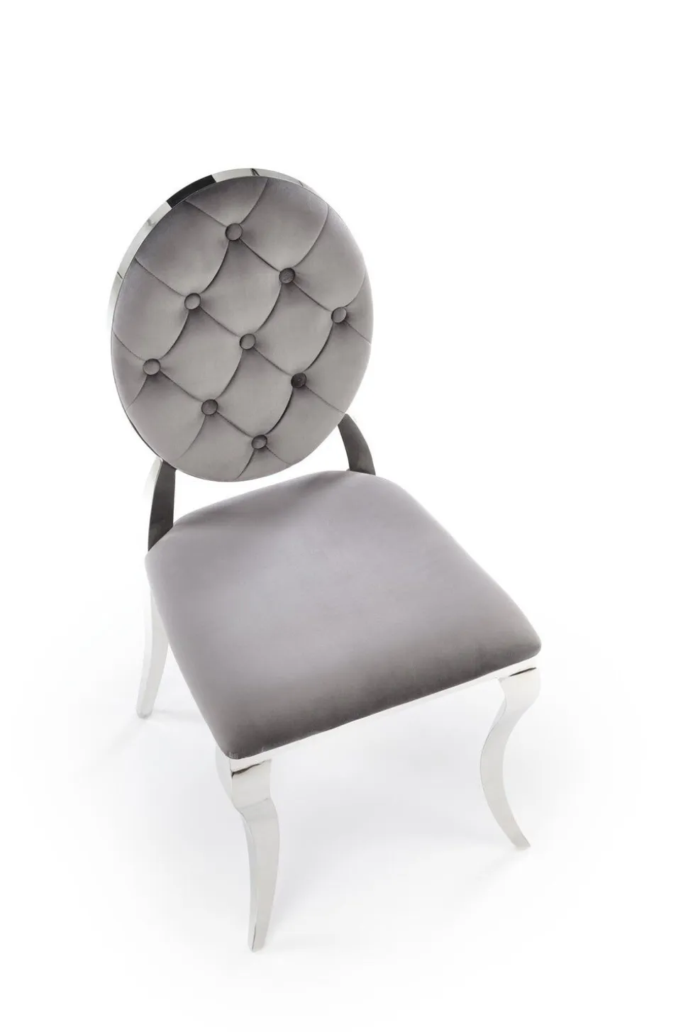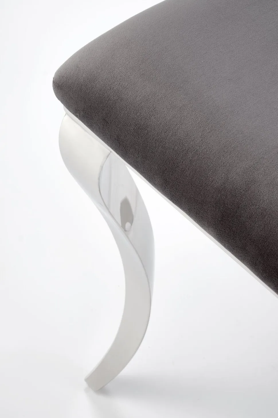 Krzesło Royale to połączenie szlachetnych materiałów. Siedzisko wykończone jest welwetem w kolorze szarym, który jest nie tylko elegancki, ale także niezwykle przyjemny w dotyku. Podstawa krzesła wykonana jest ze stali nierdzewnej w srebrnym odcieniu, co gwarantuje trwałość i stabilność konstrukcji. Dzięki wysokim nogom, pod krzesło bez problemu wjedzie robot sprzątający, co ułatwia utrzymanie czystości.