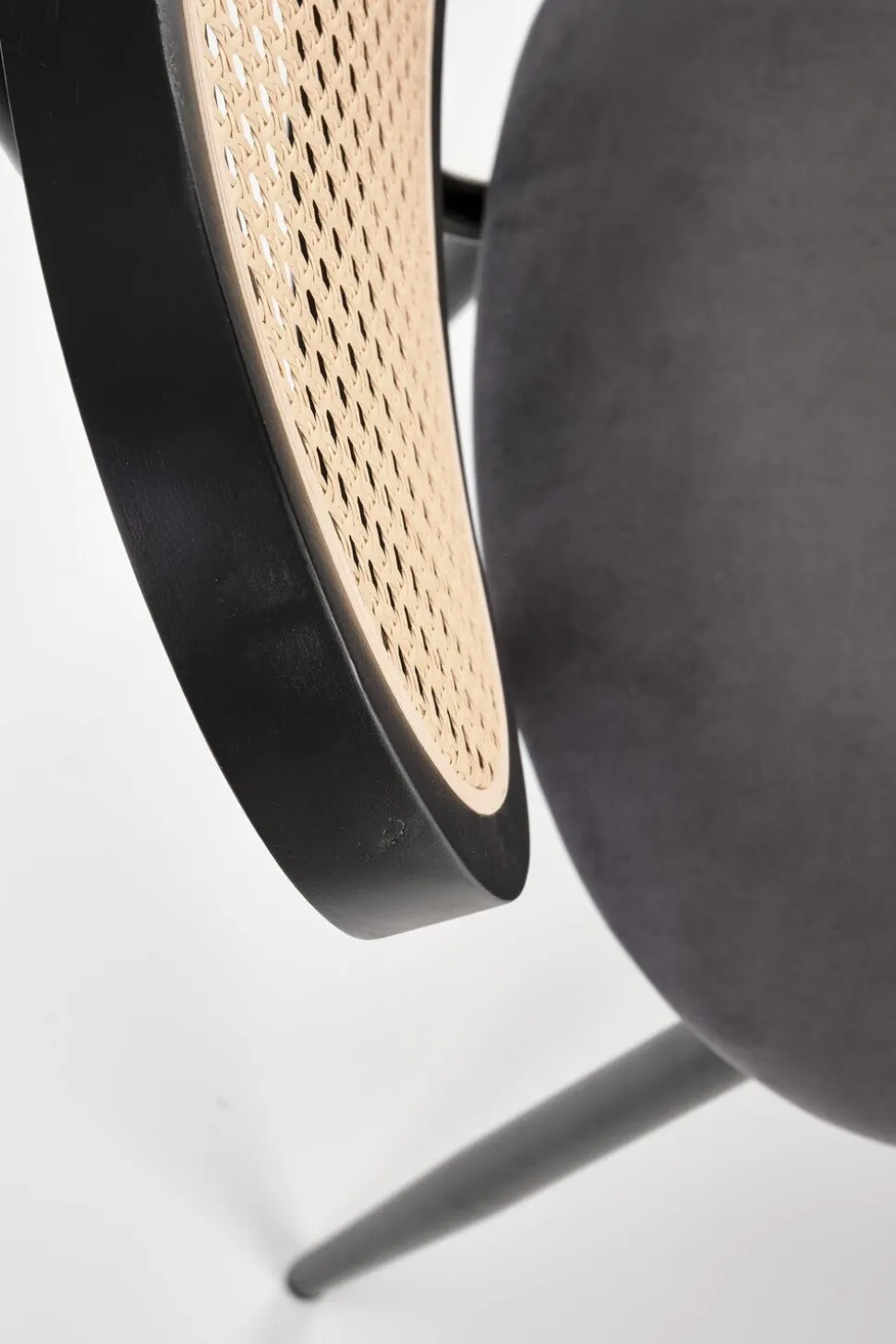 Połączenie stylu retro z nowoczesnym komfortem Krzesło Sophie to mebel, który nie tylko zachwyca swoim wyjątkowym designem, ale również gwarantuje niezrównany komfort podczas długotrwałego siedzenia. Dzięki połączeniu stylu retro z nowoczesnością, ten mebel staje się prawdziwą ozdobą każdego wnętrza. Jego solidna podstawa z malowanej proszkowo stali w eleganckim odcieniu czerni nie tylko daje mu stabilność, ale także zapewnia trwałość na wiele lat. Nie musisz się martwić o ewentualne uszkodzenia czy pęknięcia – to krzesło jest stworzone, aby służyć Ci przez długi czas. Siedzisko krzesła Sophie zostało starannie tapicerowane miłą w dotyku tkaniną welurową, która nie tylko prezentuje się stylowo, ale również zapewnia niezwykły komfort. Bez względu na to, czy siedzisz na nim przez kilka minut, czy kilka godzin, poczujesz się wygodnie i zrelaksowany. Ta przyjemna dla skóry powierzchnia sprawi, że z pewnością nie będziesz chciał z niego wstawać. Unikalnym elementem tego krzesła jest oparcie wykonane z rattanu syntetycznego i drewna litego kauczukowego. To połączenie nadaje mu niepowtarzalny retro styl, który przyciąga wzrok i dodaje charakteru każdemu pomieszczeniu. Niezależnie od tego, czy chcesz udekorować nowoczesny salon, przytulną jadalnię czy pokój młodzieżowy, krzesło Sophie doskonale się w nie wpasuje. Dodatkową zaletą tego mebla jest fakt, że występuje w dwóch modnych kolorach. Dzięki temu możesz dopasować go do własnego wnętrza i stworzyć harmonijną kompozycję. Niezależnie od tego, czy preferujesz klasyczną szarość, czy też bardziej nowoczesną zieleń, Sophie będzie doskonałym wyborem. Stylowy design, solidna konstrukcja, miękka tapicerka welurowa, unikalne oparcie i możliwość wyboru modnych kolorów sprawiają, że jest to idealny wybór. Dodaj odrobinę retro uroku do swojego wnętrza i ciesz się niezrównanym komfortem dzięki krzesłu Sophie. Przygotuj się na mądry wybór! Krzesło Sophie to harmonijne połączenie stylu retro z nowoczesnym komfortem Solidna stalowa podstawa zapewnia trwałość mebla Miła w dotyku welurowa tapicerka na siedzisku gwarantuje wygodę użytkowania Oparcie z rattanu syntetycznego i drewna kauczukowego nadaje meblowi unikalnego charakteru Dostępność w dwóch modnych kolorach umożliwia dopasowanie krzesła do każdego wnętrza