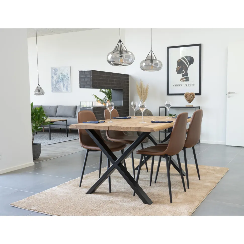 Krzesło Stockholm to połączenie brązowego siedziska i czarnej podstawy, które razem tworzą harmonijny duet kolorystyczny. Brązowa eko skóra, z której wykonane jest siedzisko, dodaje mu elegancji, a czarna metalowa podstawa – nowoczesności. Ta kolorystyka sprawia, że krzesło jest uniwersalne i będzie pasować do większości wnętrz.