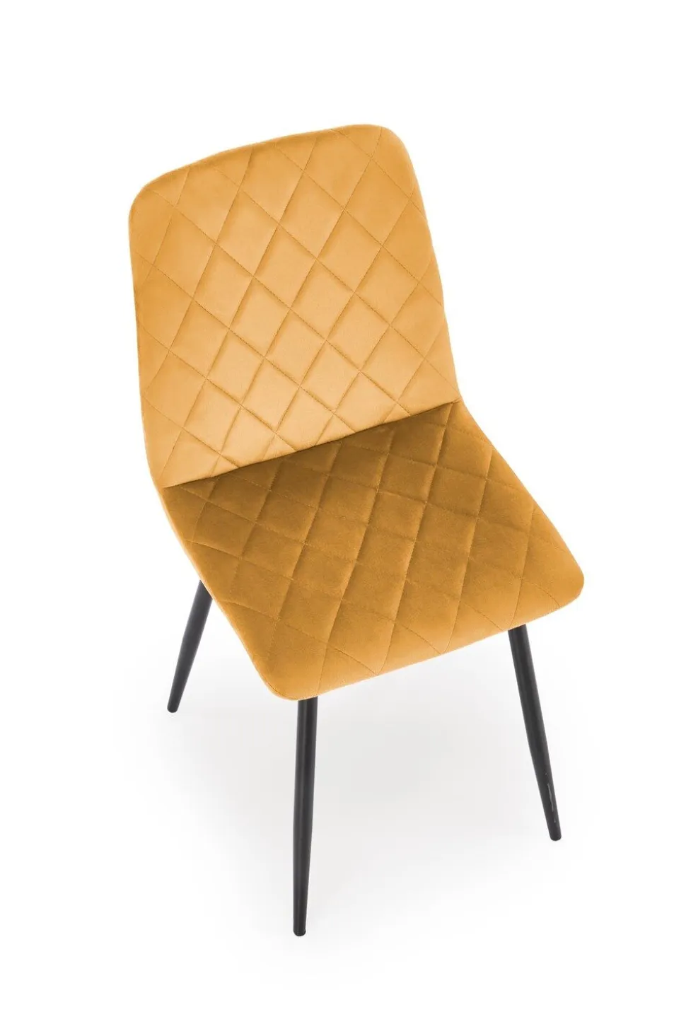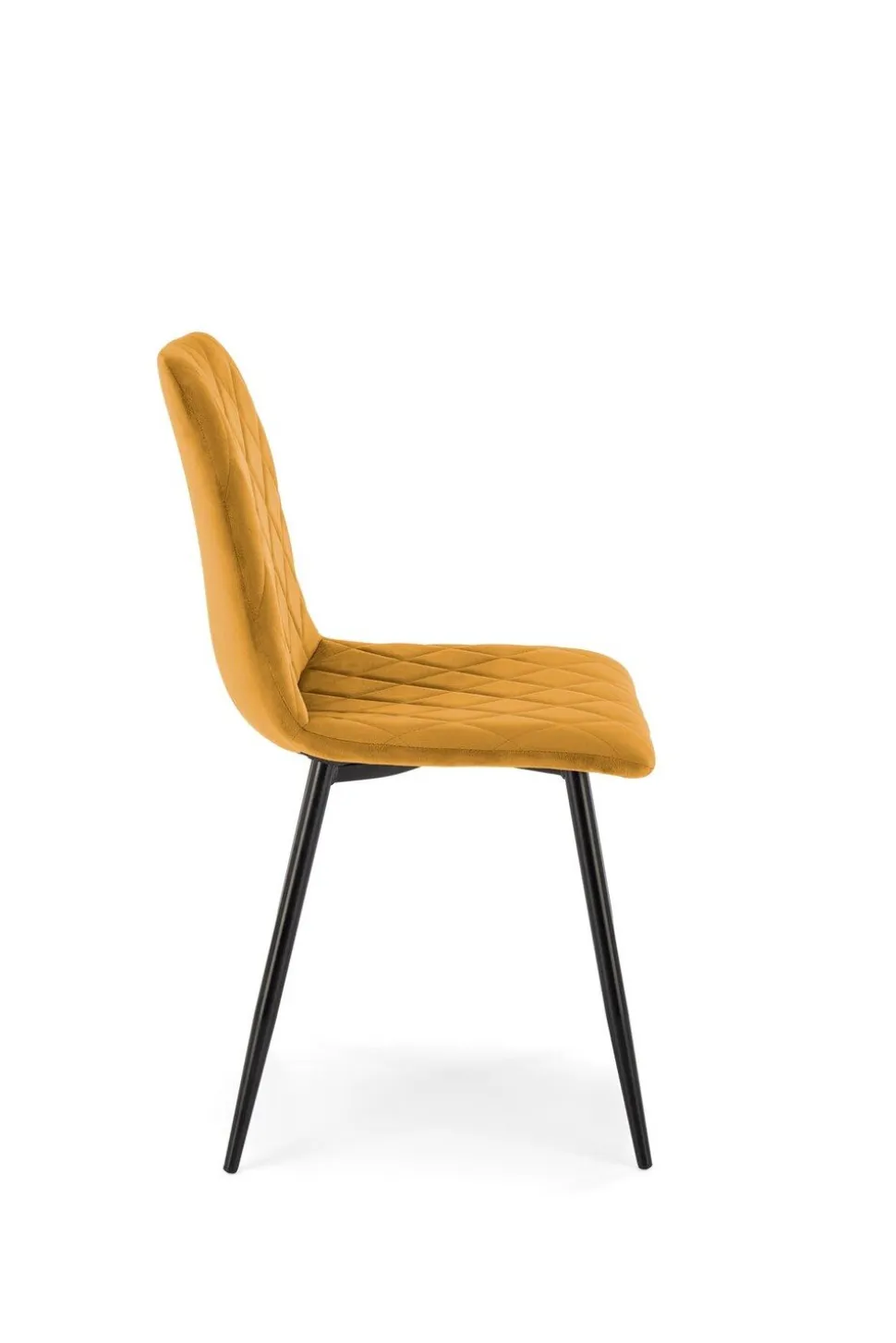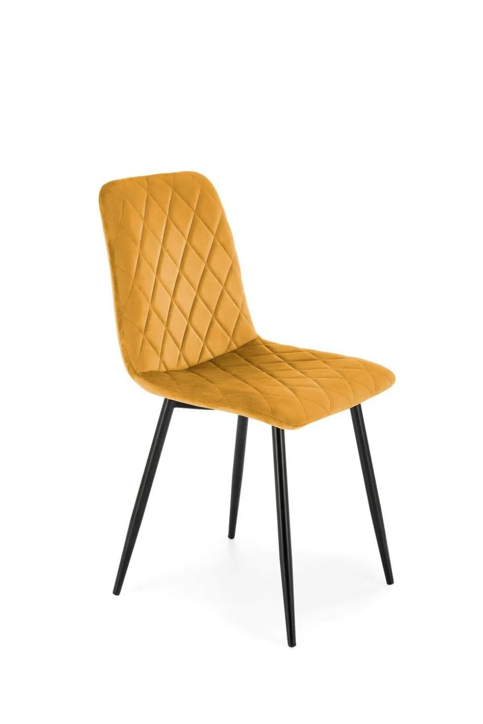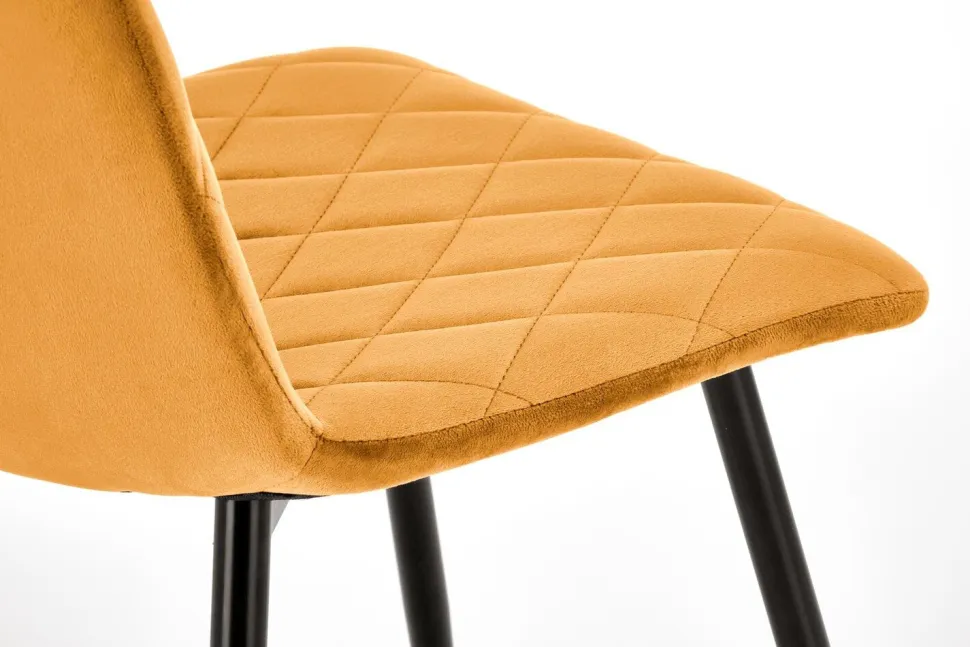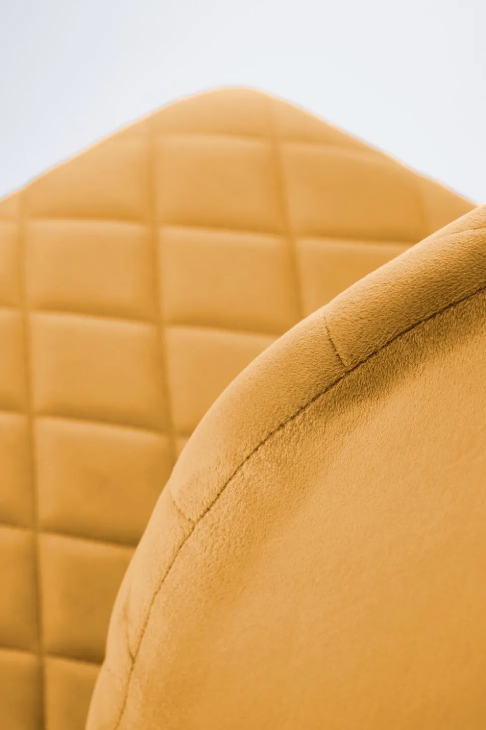 Krzesło Uferyn Velvet w kolorze musztardowym to elegancki i uniwersalny mebel, który doskonale wkomponuje się w nowoczesne wnętrza.Wykonane z wysokiej jakości tkaniny velvet,oferuje nie tylko estetyczny wygląd, ale także komfort użytkowania.Pikowana powierzchnia krzesładodaje mu charakteru, sprawiając, że staje się wyjątkowym elementem wystroju.Stelaż krzesła wykonany jest z malowanej proszkowo stali,co zapewnia trwałość i stabilność. Krzesło posiada cztery szeroko rozstawione, proste nogi o okrągłym profilu, które zapewniają solidne oparcie.