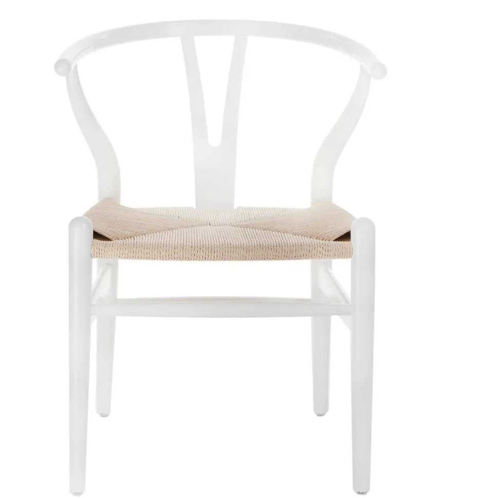 Drewniane krzesło Wicker wykonane zostało z litego drewna. Lekki kształt i ergonomicznie wygięte oparcie powodują, że krzesło jest niezwykle wygodne w użytkowaniu. Siedzisko wykonane jest z plecionki z naturalnego sznurka jutowego o matowym wykończeniu, dzięki czemu całość projektu ze sobą współgra. Podstawa krzesła wykonana z drewna malowanego na kolor biały posiada półmatowe wykończenie. Krzesło dostępne jest w ofercie w kilku wersjach kolorystycznych. Nie wymaga montażu, maksymalne obciążenie wynosi 120kg. Krzesło wykonane zostało w stylu prowansalskim.Wysokość podłokietników: 74cmWysokość siedziska: 45cmGłębokość siedziska: 42cmSzerokość siedziska: 49cmMax. ilość sztuk w kartonie:1Wymiary kartonu:60cmx60cmx75cm