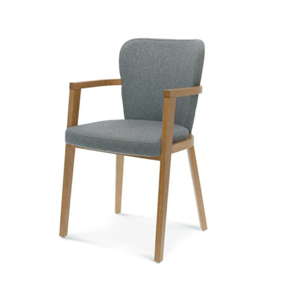 Krzesło z podłokietnikamiFameg Lava to bardzo estetyczny mebel, który swoim wyglądem sprawia wrażenie ciepłego i przytulnego. Jego szare obicie w połączeniu z dębowymi nogami idealnie wkomponuje się w domowe wnętrze salonu jak również w neutralną przestrzeń kawiarni czy hotelu. Harmonijnie wyglądać będzie w pobliżu kominka, ale sprawdzi się również przy stole czy w nowoczesnych wnętrzach będąc neutralnym dodatkiem.