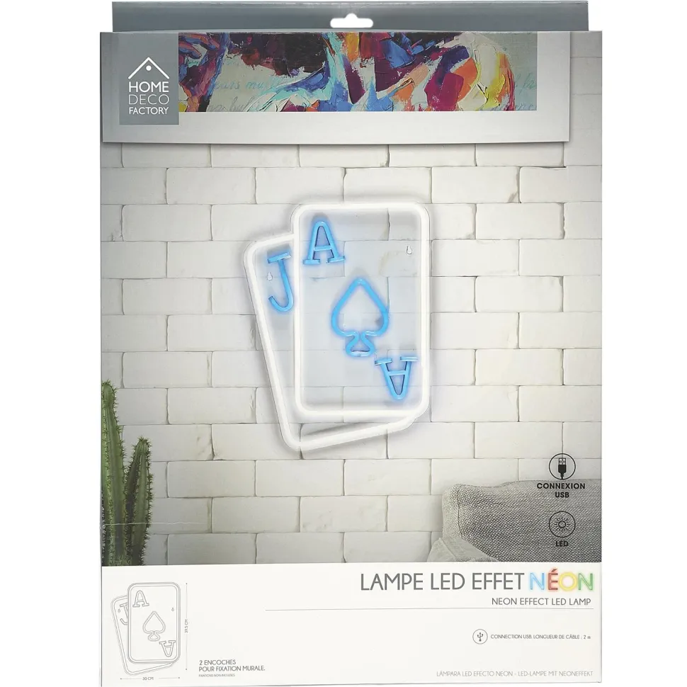 Jeżeli szukasz nietypowego dodatku, który doda twojemu wnętrzu charakteru, lampa Karta Neon LED będzie doskonałym wyborem. Wyróżniająca się oryginalnym designem, przedstawiającym karty do gry, z pewnością przyciągnie spojrzenia. To doskonałe rozwiązanie zarówno do pokoju młodzieżowego, jak i do przestrzeni męskiej, takiej jak salon fryzjerski.
