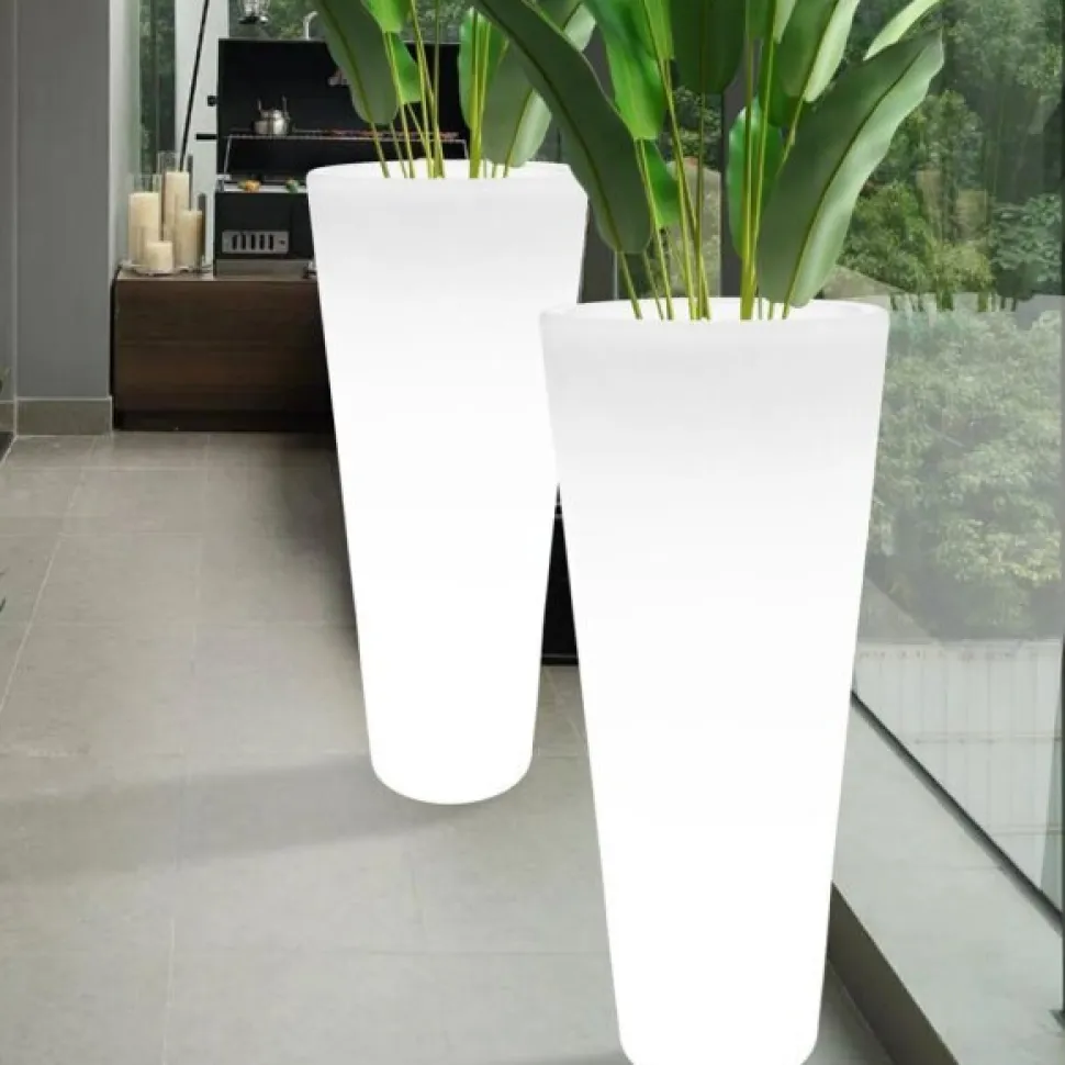 Donica Flower Pot L jest wyposażona w nowoczesne oświetlenie LED, które zapewnia żywe, intensywne kolory i długą żywotność. Dzięki odporności na warunki atmosferyczne, możesz bez obaw korzystać z donicy na zewnątrz, niezależnie od pogody. To idealne rozwiązanie na wieczorne spotkania z przyjaciółmi na tarasie, gdzie donica z oświetleniem LED stanie się nie tylko praktycznym, ale i efektownym elementem dekoracyjnym.
