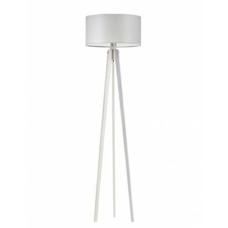 Lampa podłogowa Miami wyróżnia się ciekawą konstrukcją, tworzoną przez trzy drewniane nogi i tkaninowy abażur, Wzrok przykuwa drewniana podstawa oraz konstrukcja przypominająca budową statyw aparatu fotograficznego, Design lampy w udany sposób żongluje koncepcjami – z jednej strony klasyczny abażur, z drugiej nowoczesny kształt,WYMIARY ABAŻURU: wysokość – 20 cm, szerokość – 40 cmWYMIARY LAMPY: wysokość – 148 cm, szerokość – 40 cmKOLOR ABAŻURU: jasny szaryKOLOR STELAŻA: białyMATERIAŁ: stelaż – elementy drewniane, abażur – holenderska tkanina tekstylna podklejona na folii PVC