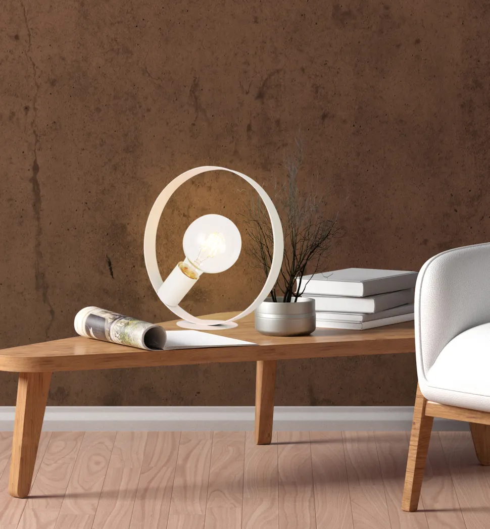 Seria prostych, metalowych lamp inspirowanych stylem skandynawskim, wykonanych z metalu w trzech wariantach kolorstycznych: białym, czarnym i różowym. W skład rodziny wchodzi lampa wisząca i stołowa. Produkty z rodziny będą idealnie komponować się w pomieszczeniach, takich jak: salon, jadalnia, kuchnia, sypialnia, gabinet, pokól dziecięcy, pokój młodzieżowy. Lampa stołowa w kolorze białym z jednym źródłem światła. Żarówka nie jest dołączona do produktów z zewnętrznym źródłem światła.