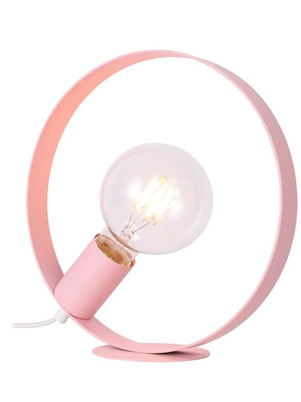 Seria prostych, metalowych lamp inspirowanych stylem skandynawskim, wykonanych z metalu w trzech wariantach kolorstycznych: białym, czarnym i różowym. W skład rodziny wchodzą: lampa wisząca i stołowa. Produkty z rodziny będą idealnie komponować się w pomieszczeniach, takich jak: salon, jadalnia, kuchnia, sypialnia, gabinet, pokól dziecięcy, pokój młodzieżowy. Lampa stołowa w kolorze różowym z jednym źródłem światła. Żarówka nie jest dołączona do produktów z zewnętrznym źródłem światła.