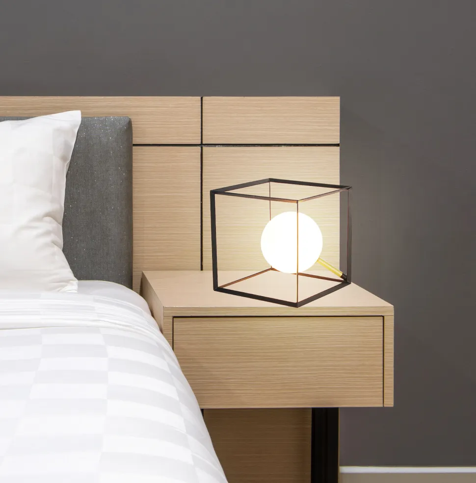 Seria lamp inspirowanych stylem industrialnym w kształcie kostki, wykonanych z metalu w kolorach czarnym i złotym, z białym szklanym kloszem wewnątrz. W skład rodziny wchodzą 3 lampy wiszące i dwie lampy stołowe. Doskonale nadają się do salonu, kuchni, jadalni, gabinetu, sypialni, pokoju młodzieżowego. Rodzina lamp sprawdzi się również w pomieszczeniach użyteczności publicznej typu salony piekności, kawiarnie, puby, itp.Seria składa się lamp pojedyńczych i potrójnych w różnych wielkościach, co daje możliwość ciekawego zestawiania lamp w pomieszczeniu. Lampa stołowa o wielkości kosztki 150mm z jednym źródłem światła. Żarówka nie jest dołączona do produktów z zewnętrznym źródłem światła.
