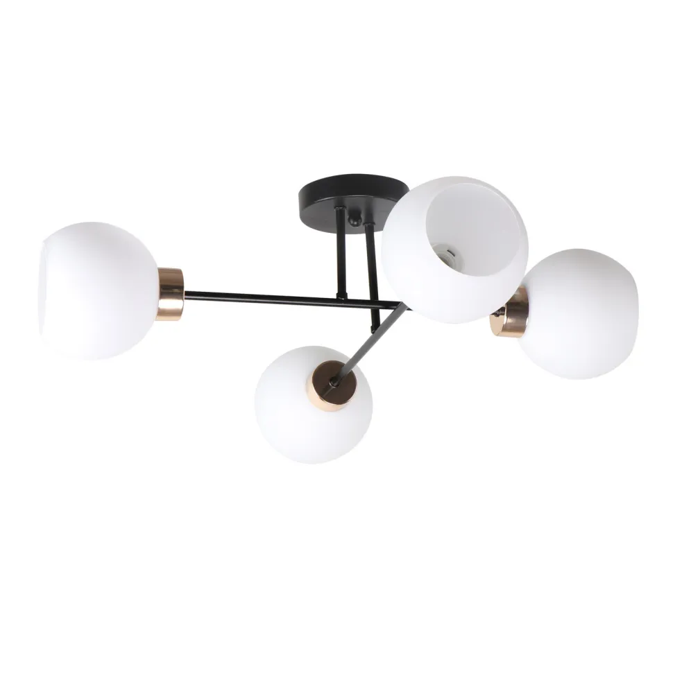 Poznaj lampę sufitową Amanda od firmy CANDELLUX LIGHTING. To nowoczesne oświetlenie o wyjątkowym designie, które idealnie wpasuje się w każde wnętrze. Jej wyjątkowym atutem jest czteropunktowe źródło światła, które zapewnia doskonałe oświetlenie nawet dużych pomieszczeń. Lampa wykorzystuje żarówki o gwincie E27 i mocy do 40W, co pozwala na doboru optymalnej jasności. Oprawa lampy w kolorze czarnym, z elementami złotymi, nadaje jej eleganckiego wyglądu, a białe klosze rozpraszają światło, tworząc przytulną atmosferę.
