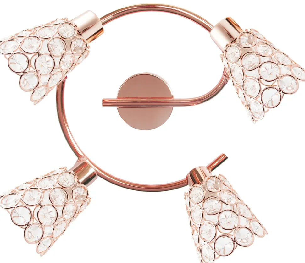 Lampa sufitowa Glossy spirala 4x40W G9 różowe złoto jest wykonana z metalu, co gwarantuje jej trwałość i odporność na uszkodzenia. Kolor różowego złota dodaje lampie elegancji i wyrafinowania, dzięki czemu świetnie wpasuje się w pomieszczenia urządzone w stylu glamour lub nowoczesnym.