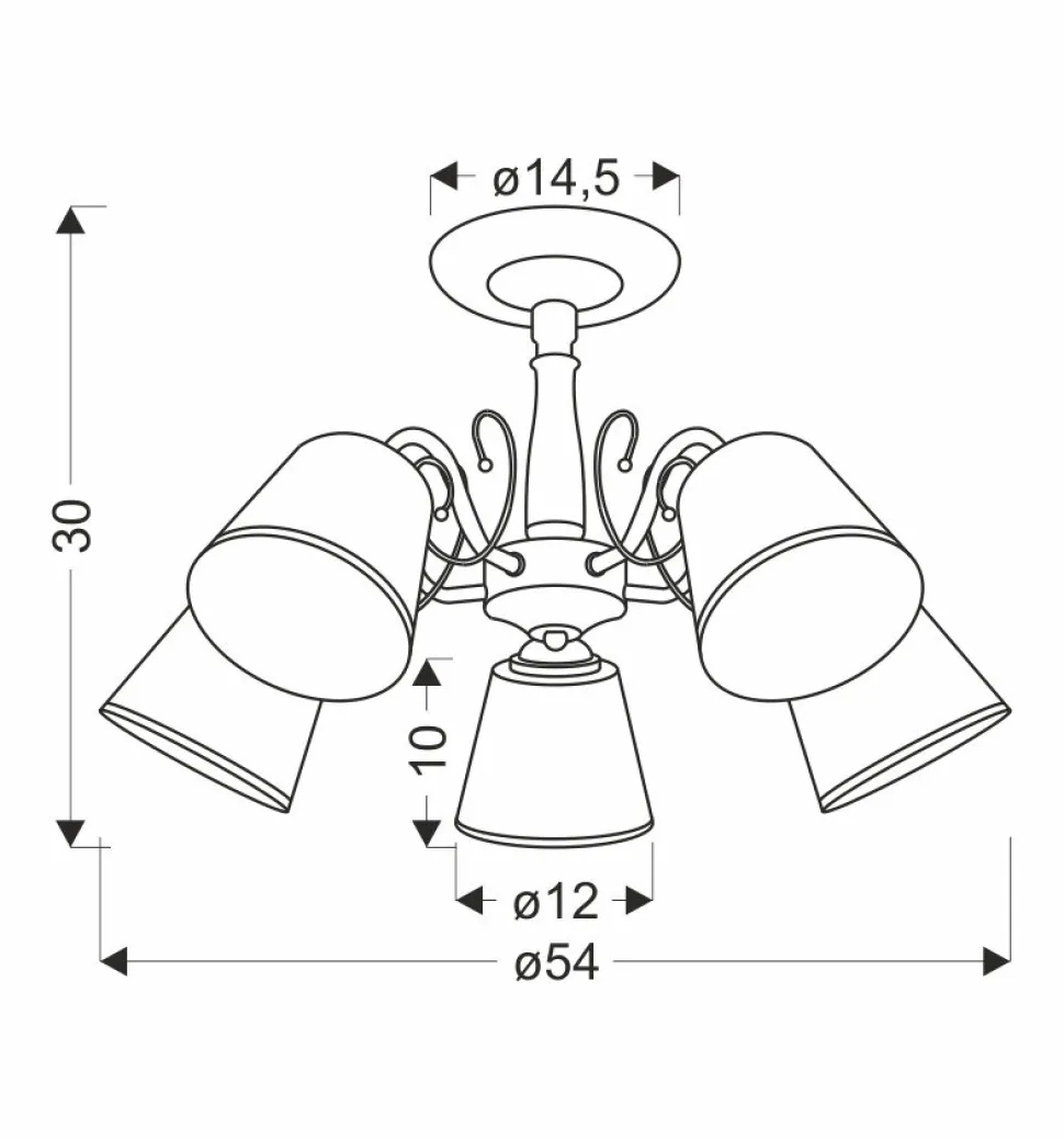 - Wyposażona w pięć żarówek E14 o mocy 40W, zapewnia jasne i przyjemne oświetlenie.