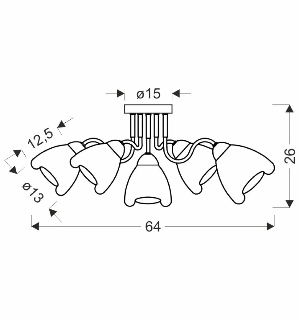 - Lampa sufitowa Unica posiada pięć gniazd E27 do żarówek o mocy do 40W