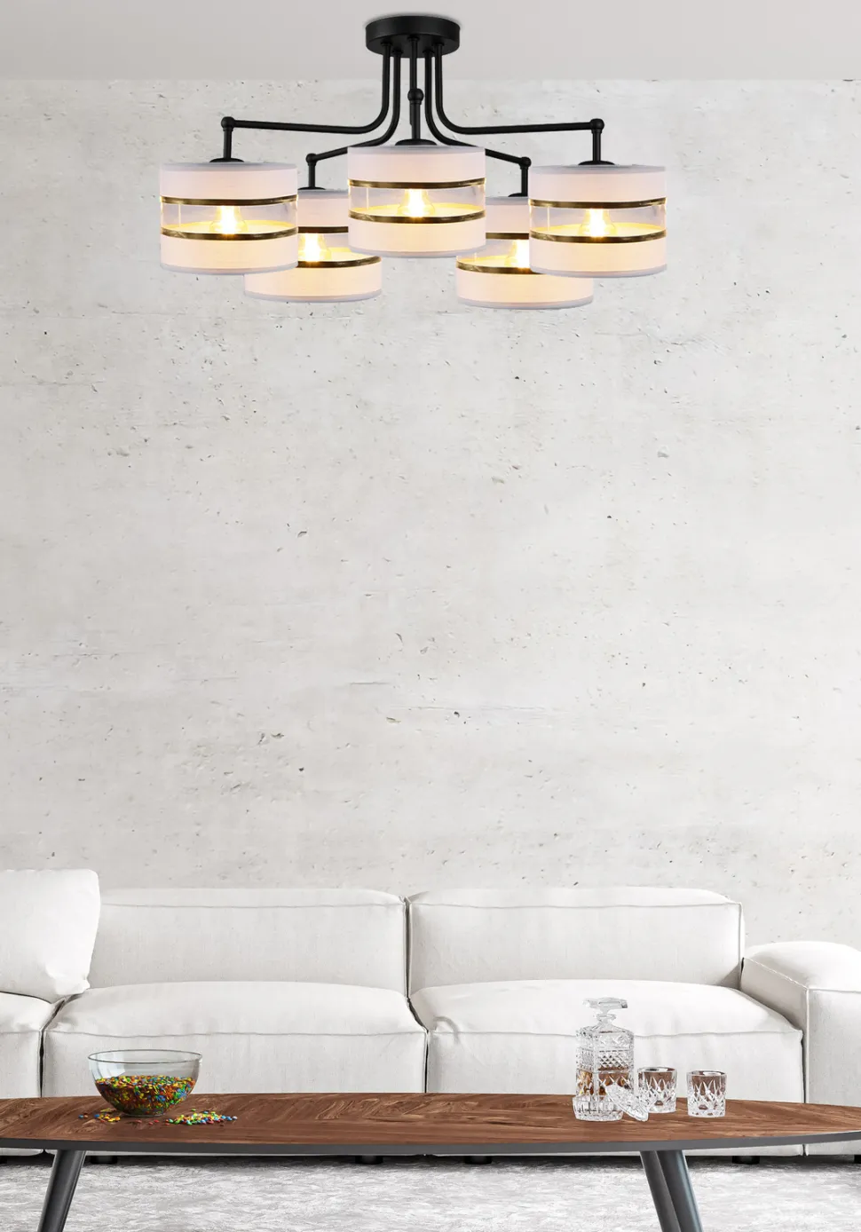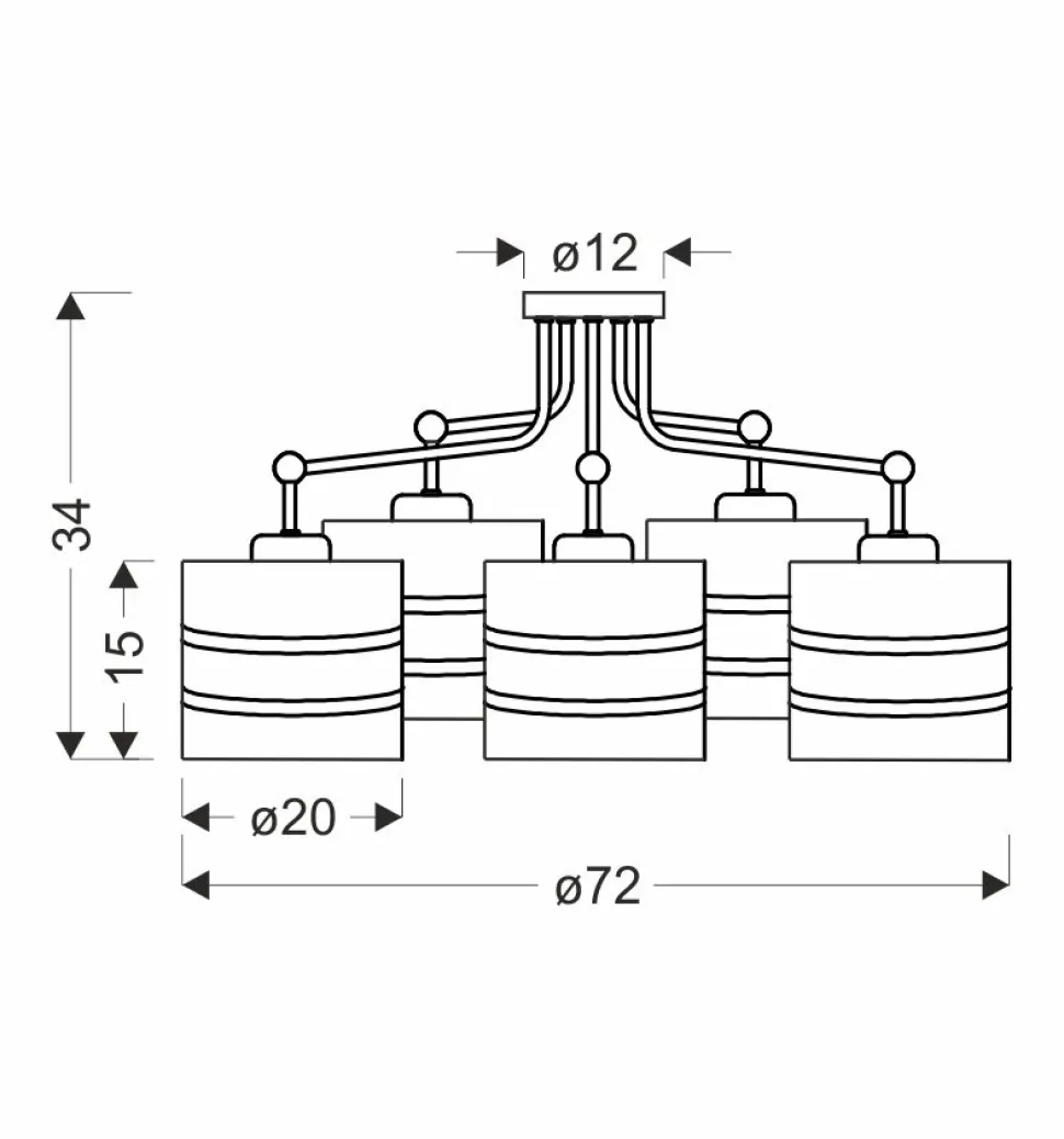 - Wyposażona w pięć oprawek E27, które zapewniają ciepłe, przyjemne światło.