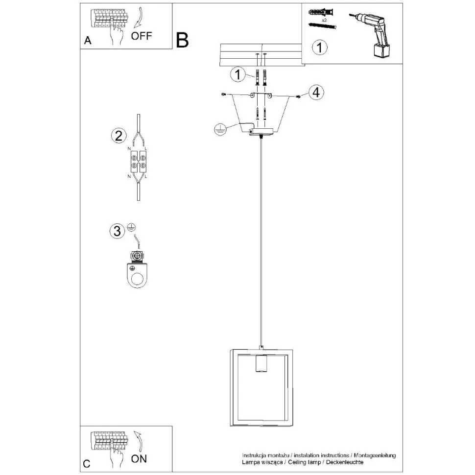 - Źródło światła (żarówka E27, 1x max 15W LED) nie jest w komplecie.