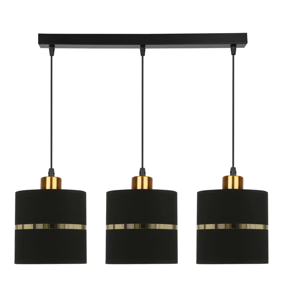 Złote detale na czarnym tle to wyrafinowane połączenie, które przyciąga uwagę i nadaje pomieszczeniu niepowtarzalnego charakteru. Lampa wisząca Assam, z abażurem wykonanym z czarnej tkaniny, jest idealnym wyborem dla osób ceniących elegancję połączoną z nowoczesnym designem. Złoty pasek na części abażura dodaje lampie wyjątkowego uroku, a folia w złotym kolorze, wykończona wewnątrz abażura, tworzy ciepłe i przytulne oświetlenie.