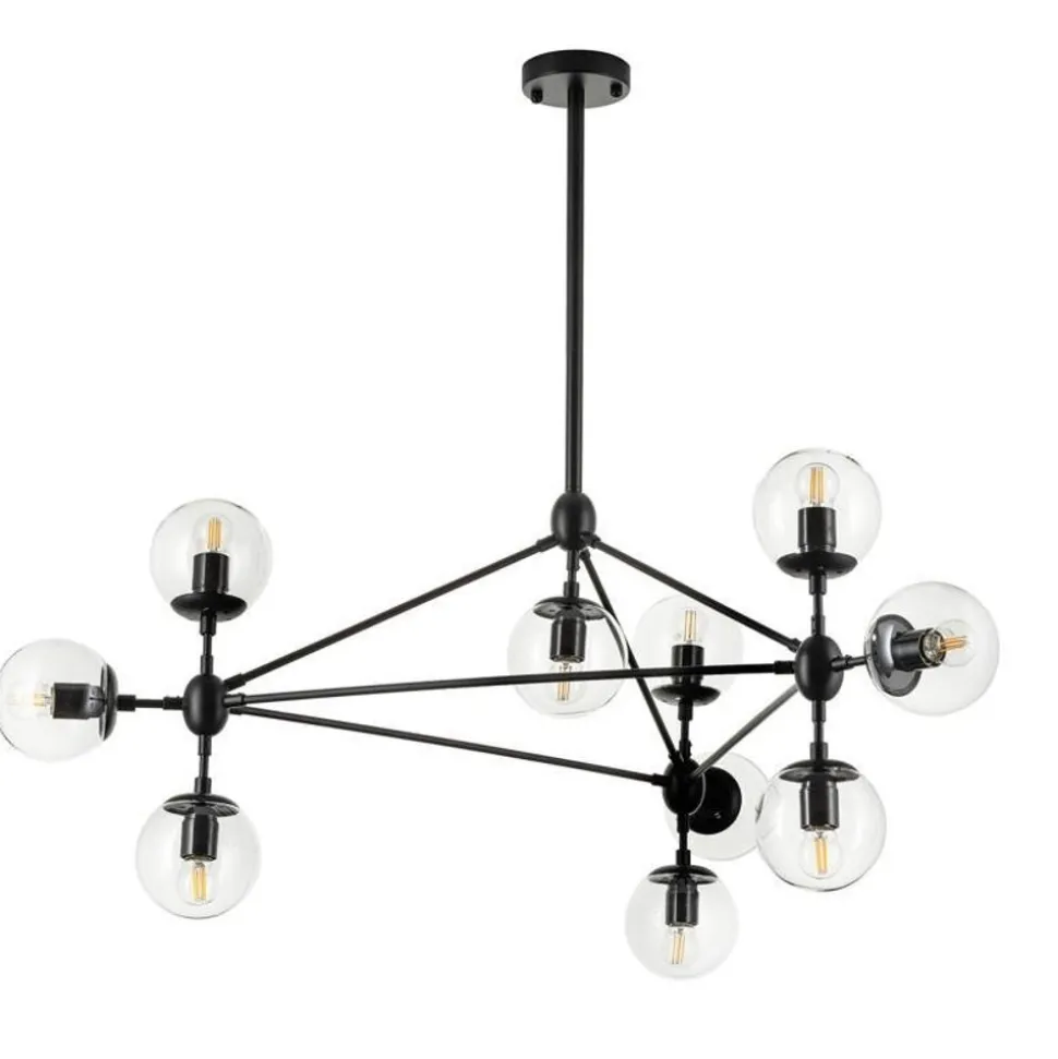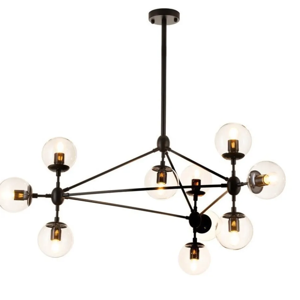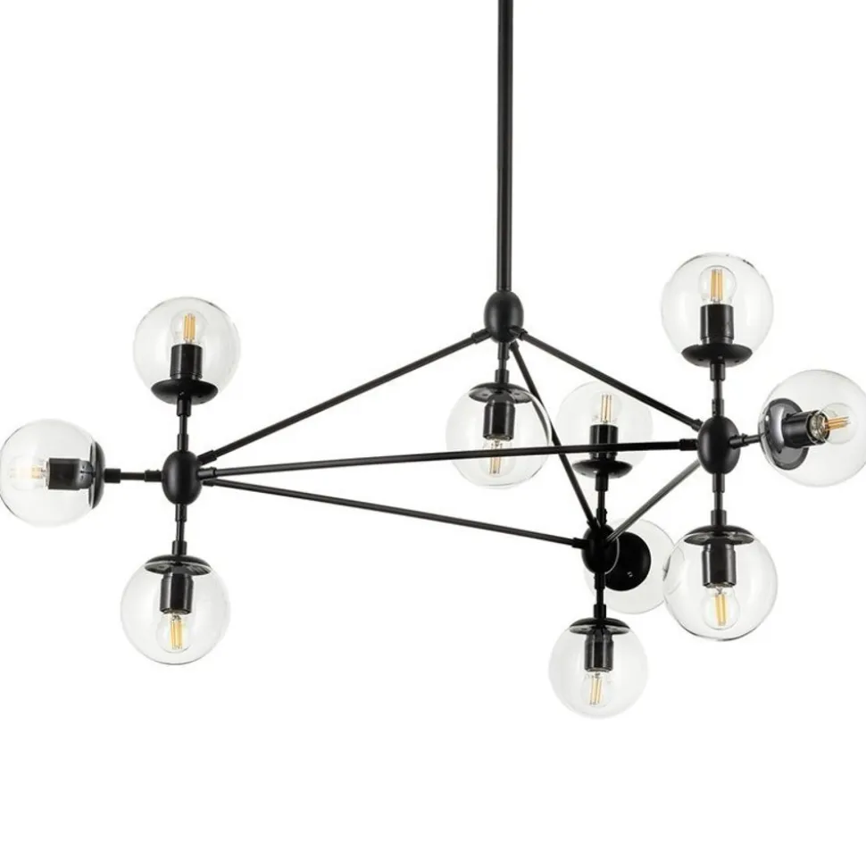 Wyobraź sobie lampę, która nie tylko oświetla Twój dom, ale także przyciąga uwagę swoim unikalnym wyglądem. Taka jest lampa wisząca ASTRIFERO-10. Ta nowoczesna i elegancka lampa, z czarnym metalowym stelażem na planie trójkąta, przypomina figurę molekularną. Jest to model, który z pewnością przyciągnie uwagę w każdym wnętrzu. Jej kuliste klosze wykonane są z przezroczystego szkła, co zapewnia przyjemne, rozproszone światło, tworząc w pomieszczeniu przytulną atmosferę.