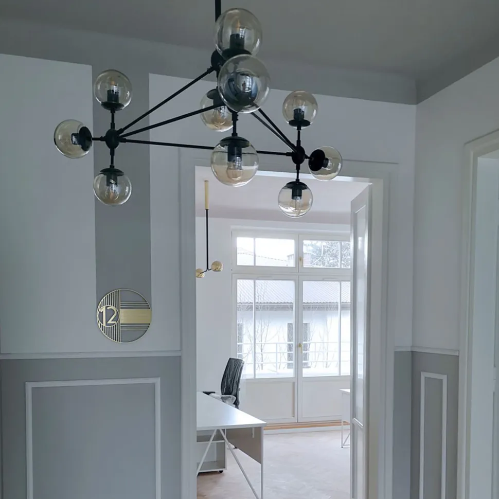 ASTRIFERO-10 to lampa, która doskonale sprawdzi się w różnych pomieszczeniach. Możesz ją zawiesić w salonie nad stolikiem kawowym lub stołem jadalnym, w sypialni nad łóżkiem lub toaletką, w przedpokoju, aby stworzyć przytulne i ciepłe wejście do domu, a nawet w jadalni, aby podkreślić wyjątkowy charakter tego pomieszczenia. Dzięki swojemu uniwersalnemu wyglądowi, lampa doskonale wpisuje się w klasyczne oraz nowoczesne przestronne wnętrza takie jak restauracje, hotele, bary czy hol.