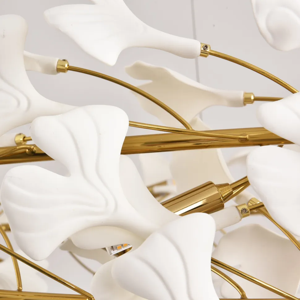 Marka Step into Design postawiła na wysoką jakość wykonania. Stelaż lampy wiszącej BOTANIKA WAVE wykonany jest z metalu, co gwarantuje jej trwałość i odporność na uszkodzenia. Natomiast białe listki, które przypominają liście Ginkgo, wykonane są z ceramiki. To połączenie nie tylko dodaje lampie elegancji, ale także sprawia, że jest łatwa w utrzymaniu czystości.