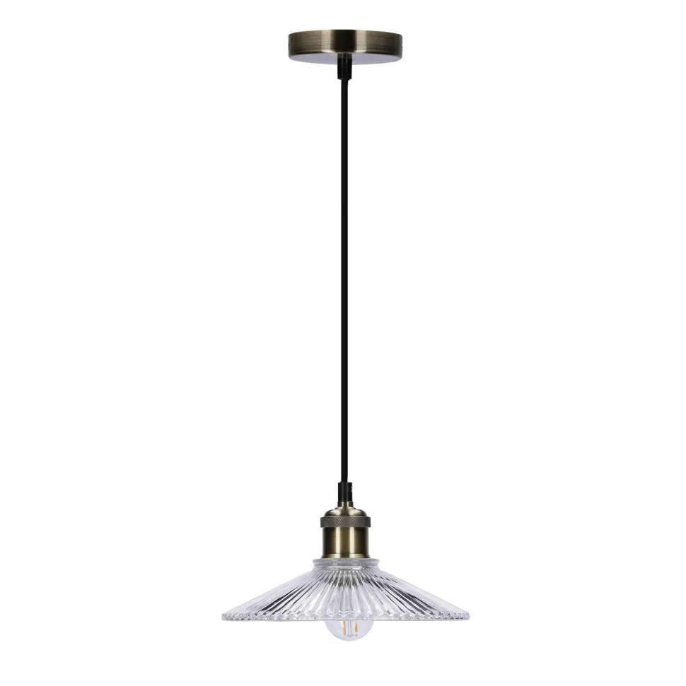 Seria dwóch lamp inspirowananych stylem Art Deco ze szklanym ryflowanym kloszem o dwóch średnicach. Lampy pasują do klasycznych wnętrz, do pomieszczeń takich jak salon, kuchnia, jadalnia, sypialnia, gabinet. Lampa wisząca o średnicy 21 cm z jednym punktem świetlnym. Żarówka nie jest dołączana dla produktów z zewnętrznym źródłem światła.