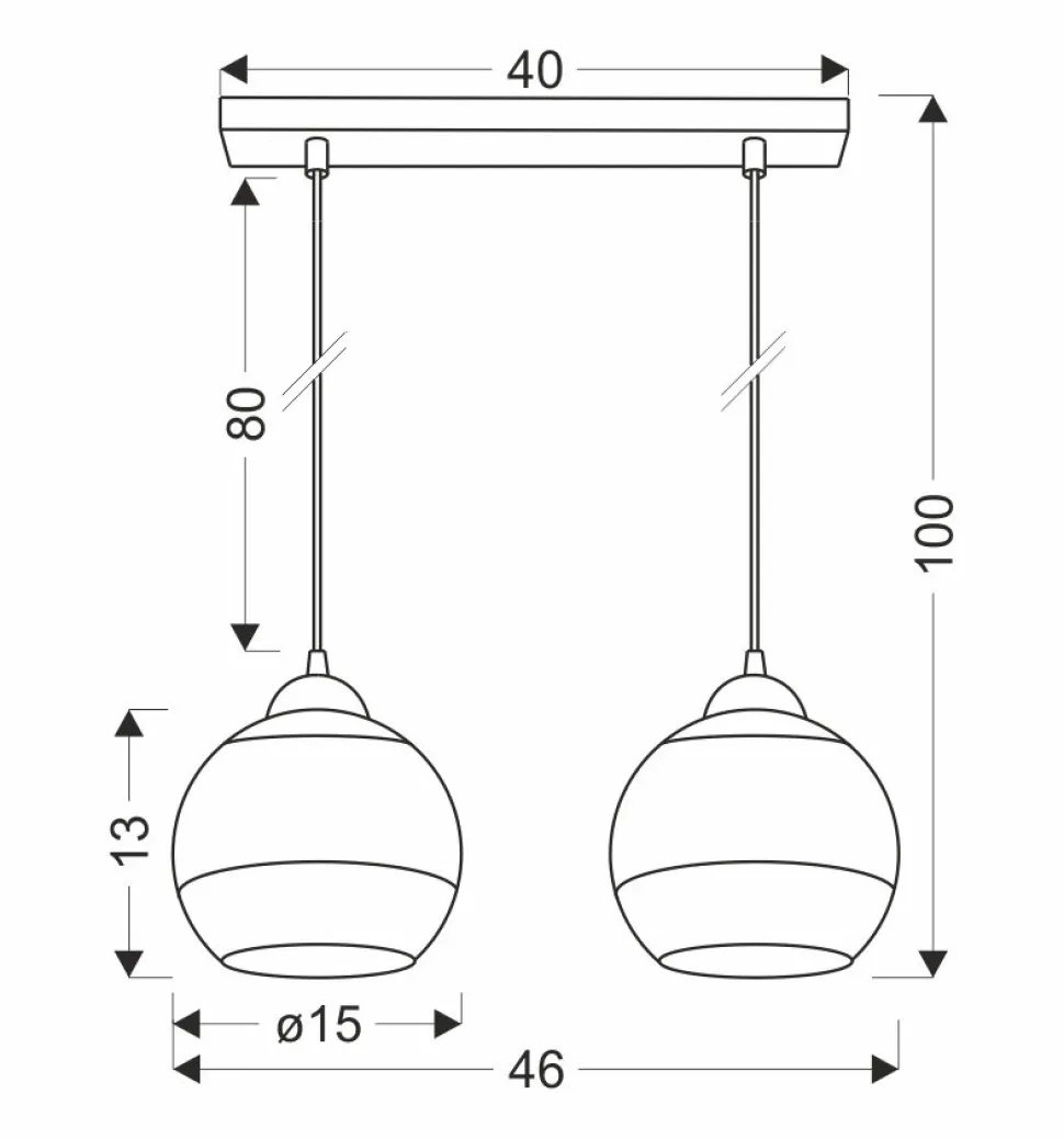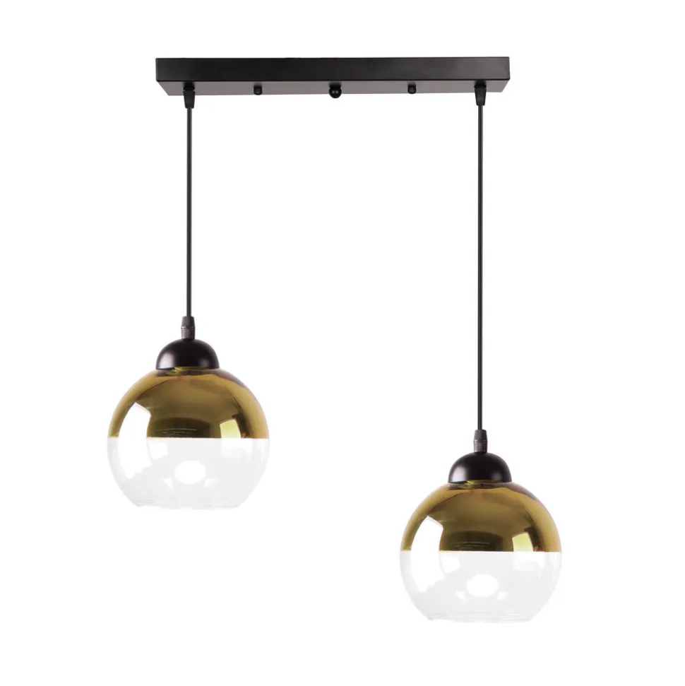 Lampa wisząca Contessa czarny 2×40 E27 z kloszem w kolorze złotym