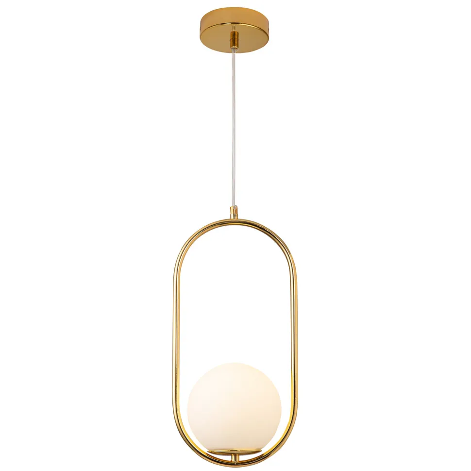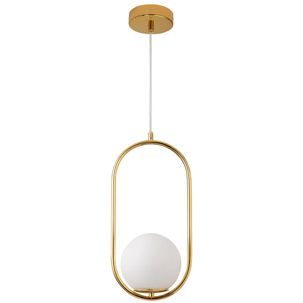 Obręcz wykonana została z metalu, a klosz z z mlecznego szkła.