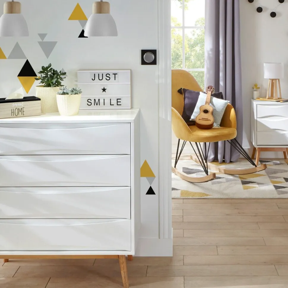 - Biały kolor lampy sprawia, że pasuje do każdego wnętrza