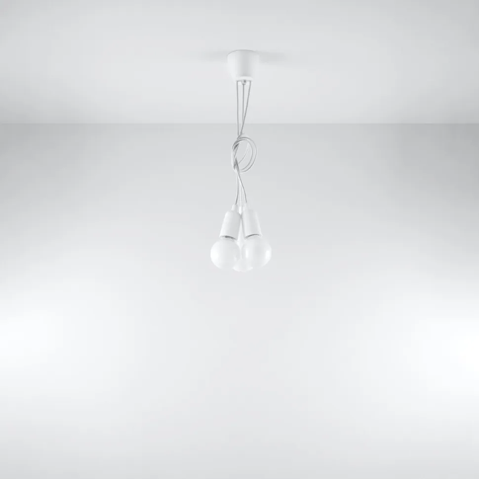 Lampa Diego dostępna jest w wielu różnych opcjach. Wyborowi podlegają kolory lampy, które mogą być zarówno stonowane (biały, czarny, szary), ale również bardzo wyraziste i żywe (żółty, pomarańczowy, zielony). Oprócz barwy obudowy i kabla, możliwe jest również wybranie ilości lampek w pęczku. Dostępne są opcje gdzie lampka jest pojedyncza lub zgrupowana w 3 lub 5. Długości kabla są regulowane i zależą od Ciebie. Dodatkowo, lampę można wiązać w popularny supeł, dodając nietuzinkowego akcentu wnętrzu.