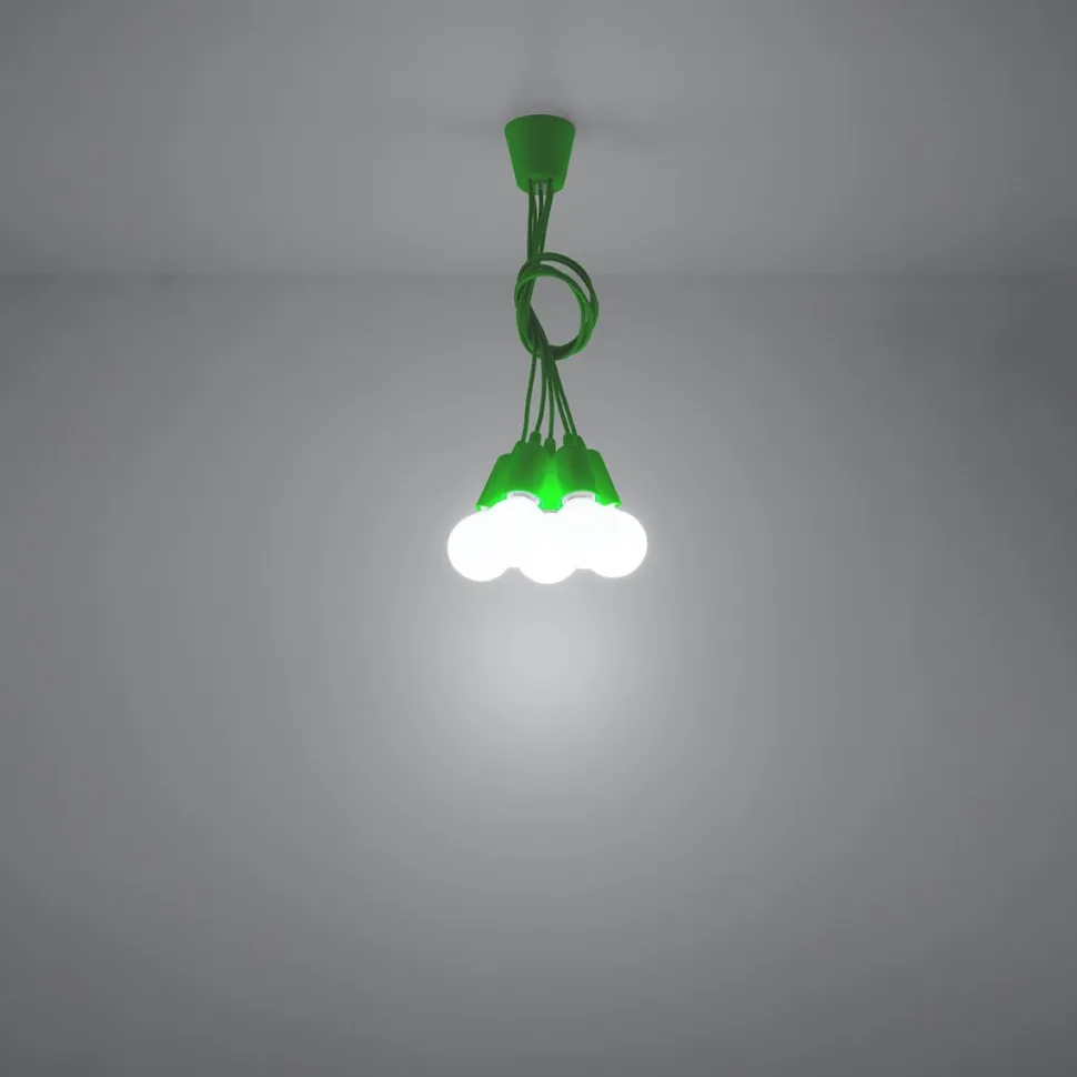 Lampa Diego dostępna jest w wielu różnych opcjach. Wyborowi podlegają kolory lampy, które mogą być zarówno stonowane (biały, czarny, szary), ale również bardzo wyraziste i żywe (żółty, pomarańczowy, zielony). Oprócz barwy obudowy i kabla, możliwe jest również wybranie ilości lampek w pęczku. Dostępne są opcje gdzie lampka jest pojedyncza lub zgrupowana w 3 lub 5. Długości kabla są regulowane i zależą od Ciebie. Dodatkowo, lampę można wiązać w popularny supeł, dodając nietuzinkowego akcentu wnętrzu.
