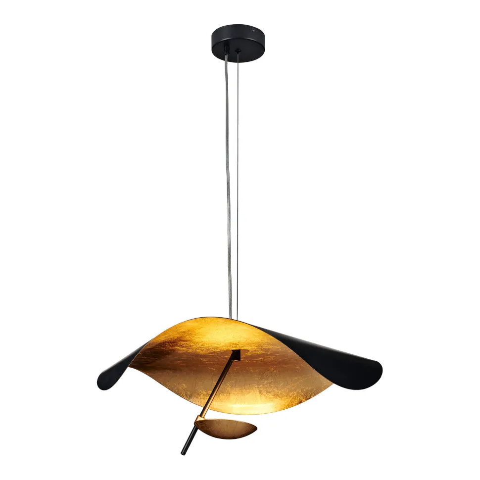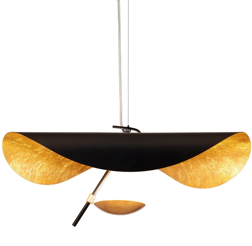 Wyobraź sobie lampę, która nie tylko oświetla pomieszczenie, ale także stanowi wyjątkowy element dekoracyjny. Taką rolę spełnia lampa wisząca ENIGMA LED. Jej niepowtarzalny, rzeźbiarski kształt przyciąga wzrok i dodaje wnętrzom niepowtarzalnego charakteru. Na zewnątrz pokryta jest matową czernią, a wewnątrz kryje się złota powłoka, która nadaje lampie niepowtarzalnego uroku.