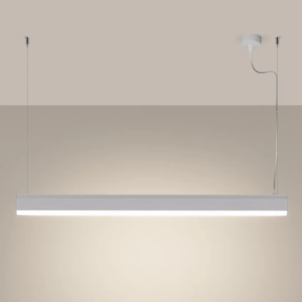 Lampa wisząca FARGE biała LED 4000K to nowoczesne oświetlenie sufitowe, które wyróżnia się swoim minimalistycznym i nowoczesnym stylem. Wykonana z aluminium, lampa jest zawieszona na dwóch subtelnych linkach, które nie tylko zapewniają stabilność, ale także dodają lekkości konstrukcji. Dzięki swoim prostym, linearnie wydłużonym kształtom, ta lampa idealnie wpasuje się w każde wnętrze, dodając mu elegancji i stylu.