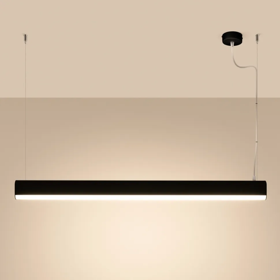 Czarny kolor lampy FARGE dodaje jej elegancji i podkreśla nowoczesny charakter. Taka lampa będzie idealnym dopełnieniem aranżacji w stylu minimalistycznym, loftowym czy industrialnym. Czarna lampa wisząca to także doskonały wybór do biura czy poczekalni, wprowadzając do nich profesjonalny i elegancki klimat.