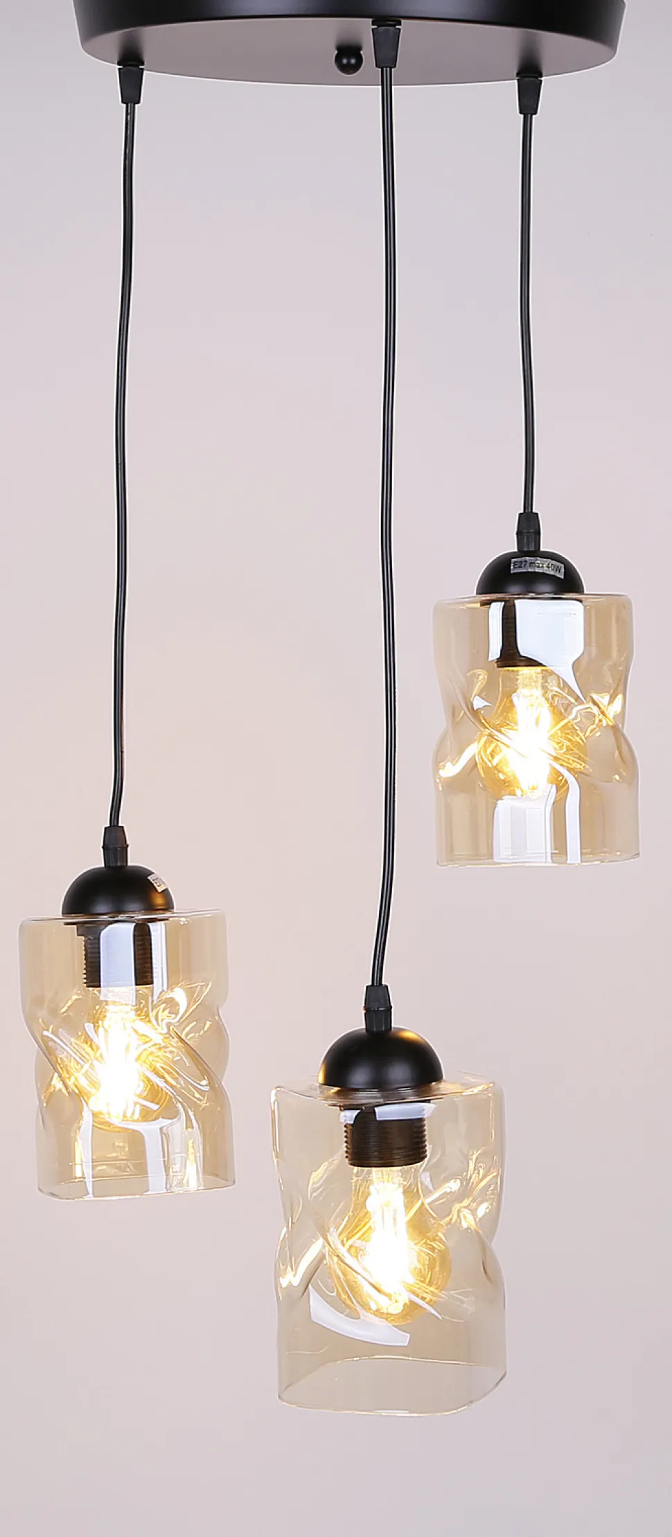 Lampa wisząca Felis talerz czarny 3x60W E27 klosz bursztynowy
