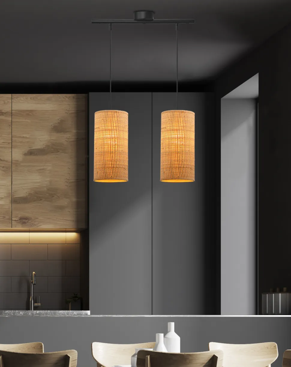 Lampa wisząca Fleri to wyjątkowe połączenie nowoczesności i klasyki, które wprowadzi do Twojego wnętrza niepowtarzalny klimat. Wykonane z beżowego rattanu abażury o wymiarach 12×25 cm, w połączeniu z czarną oprawą, tworzą oryginalną kompozycję, która stanie się prawdziwym centrum uwagi. Lampa Fleri posiada dwa abażury na dwie żarówki o gwincie E27, co pozwoli na idealne oświetlenie pomieszczenia, niezależnie od jego wielkości.