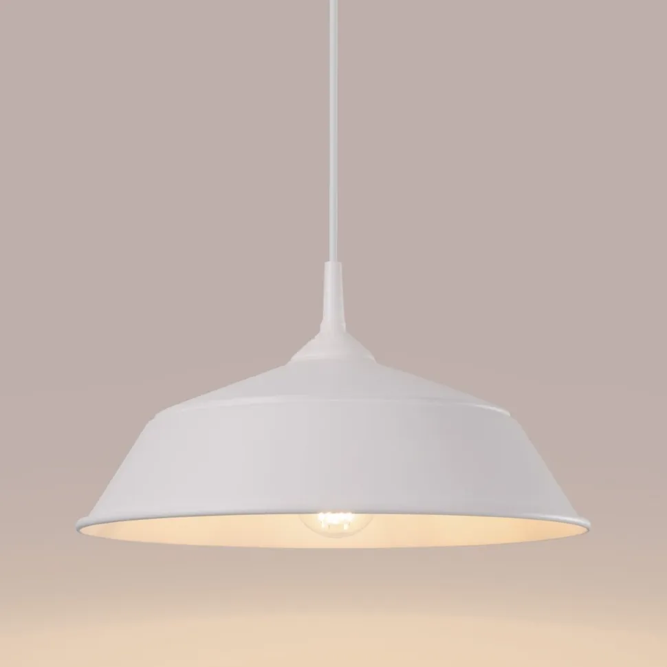 Zapraszamy do zapoznania się z naszą propozycją lampy wiszącej FRIKA w kolorze białym. Jest to wyjątkowe połączenie prostoty i elegancji, które z pewnością przypadnie do gustu miłośnikom minimalistycznego designu. Stożkowy klosz z matową, białą powierzchnią harmonijnie rozprasza światło, tworząc subtelną atmosferę w pomieszczeniu. Wykonana ze stali lampa doskonale wpisuje się w styl skandynawski, loftowy, nowoczesny czy industrialny.
