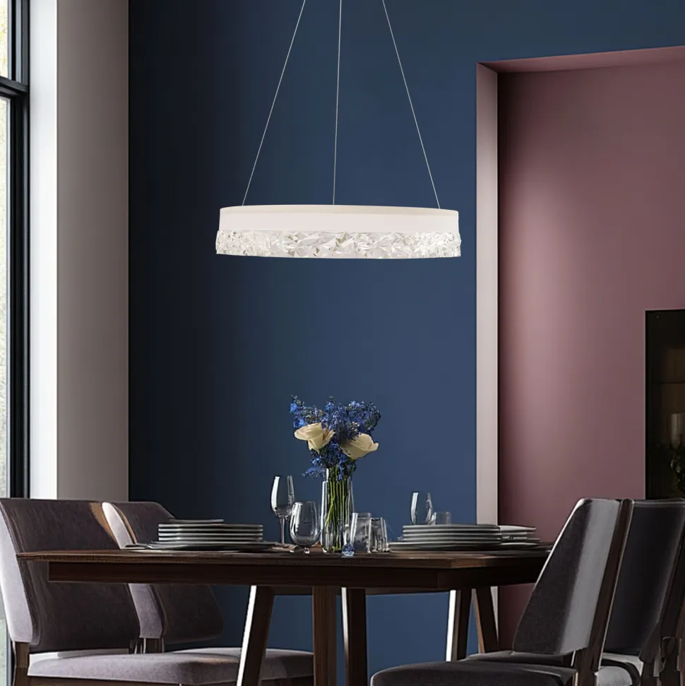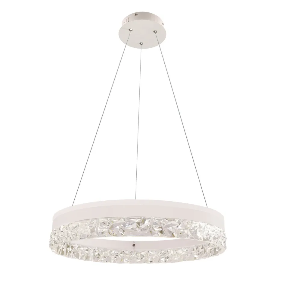 Jeżeli poszukujesz lampy, która będzie nie tylko funkcjonalnym źródłem światła, ale również stylowym dodatkiem do Twojego wnętrza, lampa wisząca FROZI spełni Twoje oczekiwania. Biały kolor oprawy harmonijnie łączy się z bezbarwnymi kryształkami, które tworzą efektowną grę światła. Wyposażona w moduł LED o mocy 32W, ta lampa zapewni Ci ciepłe, przyjemne oświetlenie o barwie 3000K. Idealna do salonu, sypialni czy jadalni, doda Twojemu wnętrzu nowoczesnej elegancji.