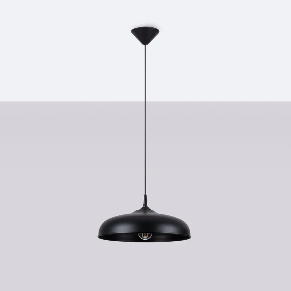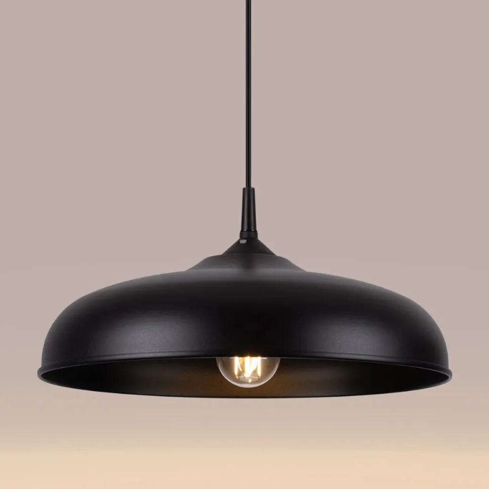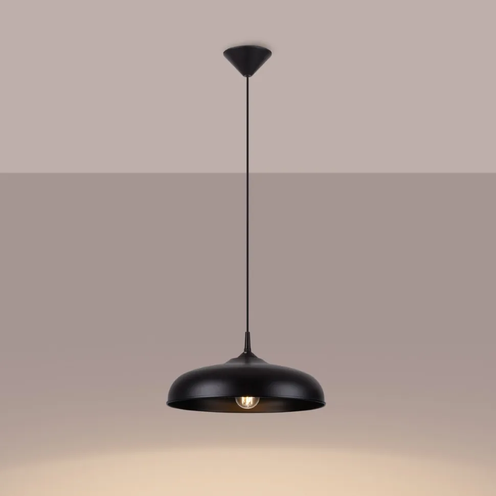 Prezentowana lampa wisząca GINA czarna to połączenie nowoczesnego designu z praktycznością. Jej charakterystycznym elementem jest elegancki, kopułowaty klosz w czystej, matowej czerni. Klosz skierowany jest ku dołowi, co sprawia, że światło jest miękko rozproszone, co tworzy przyjemną atmosferę.