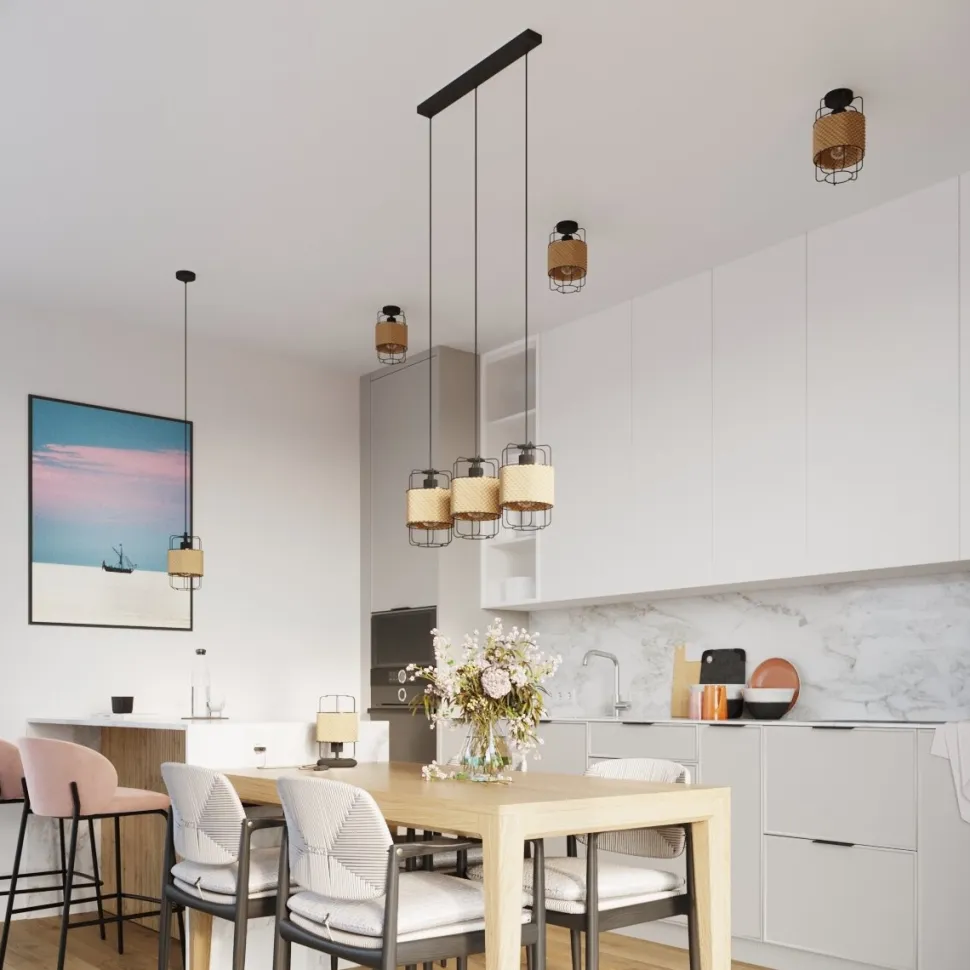 Styl industrialny lampy GIZUR 3L to ukłon w stronę loftowych wnętrz. Jej czarny kolor dodaje elegancji i podkreśla nowoczesny charakter. Lampa ta doskonale sprawdzi się w biurze, jadalni, kuchni, salonie czy sypialni, nadając każdemu z tych pomieszczeń niepowtarzalnego charakteru.