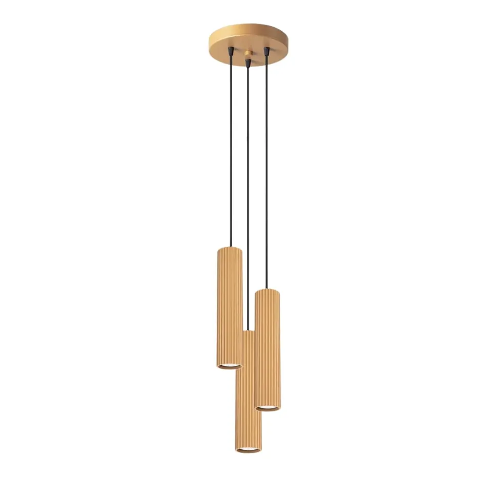 Złota lampa wisząca KARBON 3P to wyjątkowy element oświetlenia, który doda blasku każdemu wnętrzu. Jej nowoczesny design i ryflowana struktura czynią ją nie tylko praktycznym, ale i stylowym dodatkiem do twojego domu. Dostępna w wielu kolorach i konfiguracjach, lampa KARBON 3P jest idealna do salonu, sypialni, przedpokoju czy gabinetu.