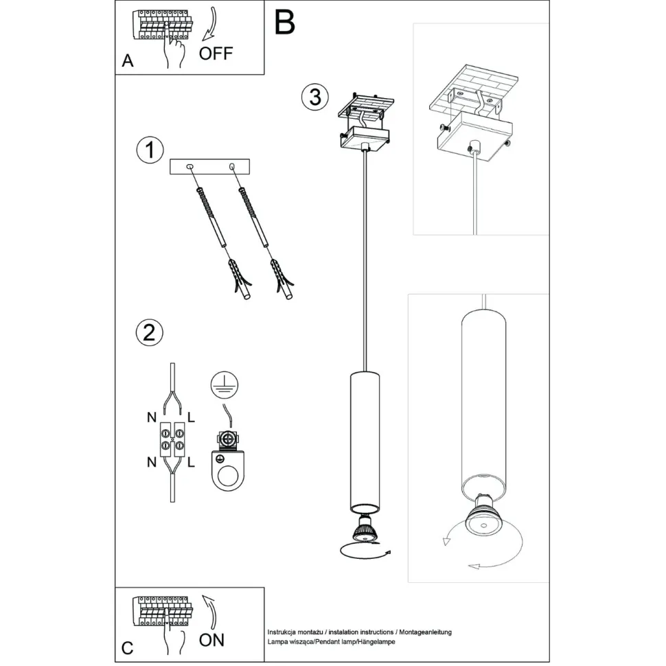 - Regulowana wysokość zawieszenia pozwala na dostosowanie lampy do indywidualnych potrzeb.