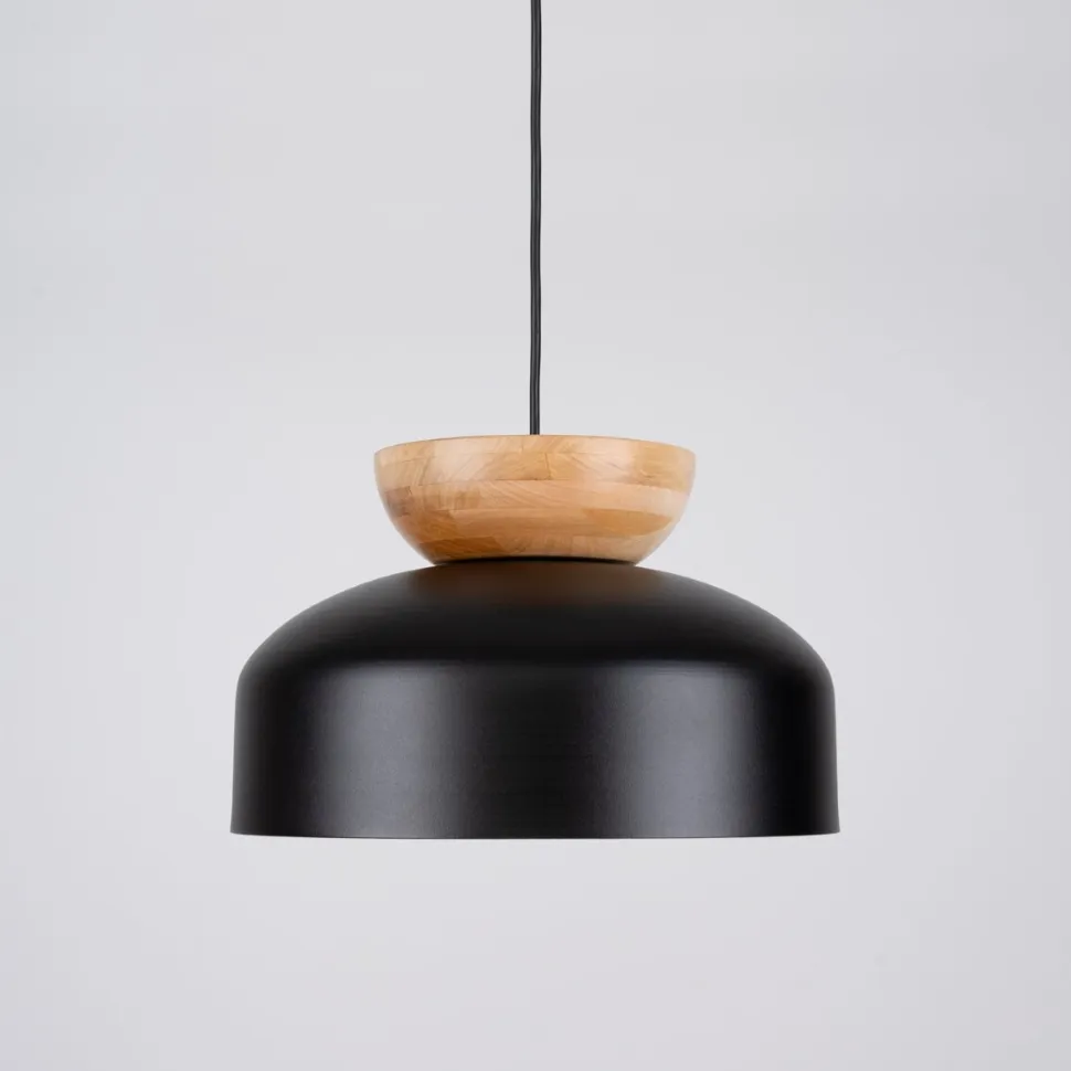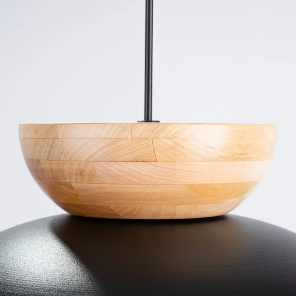 - Lampa wisząca MARION czarna to połączenie nowoczesnego designu z naturalnymi akcentami drewna.