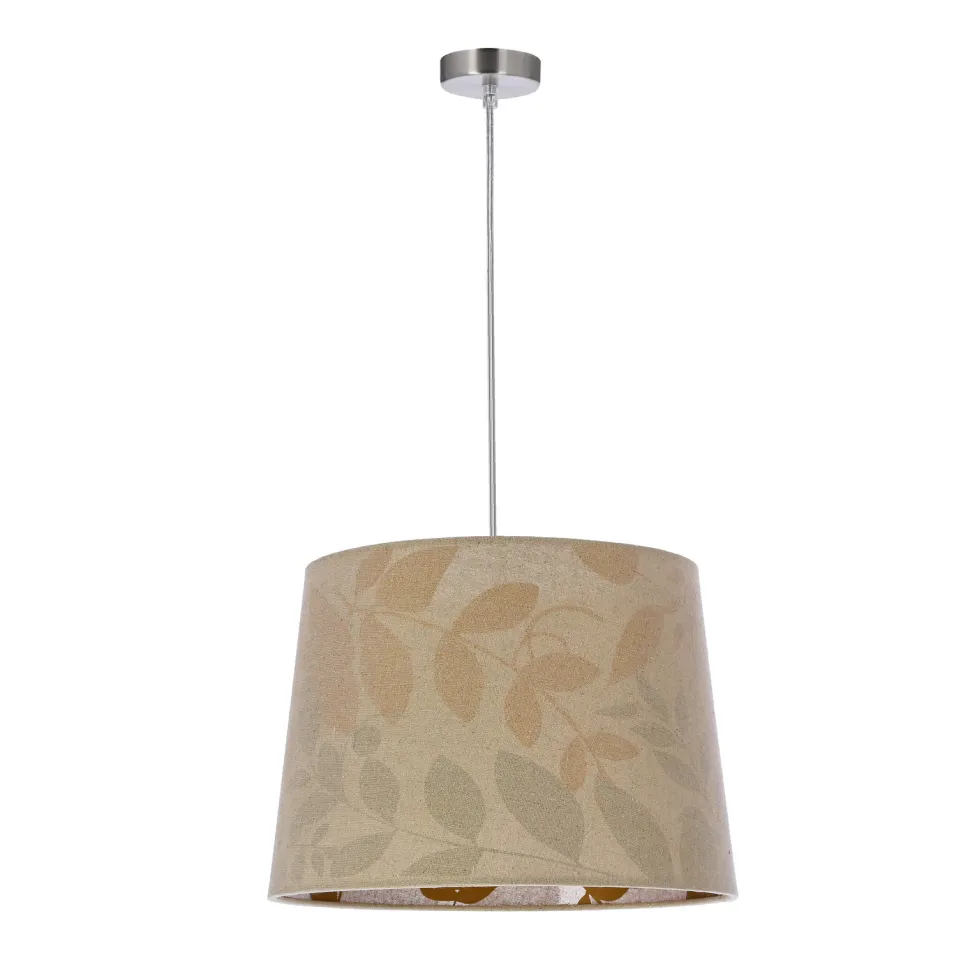 Połączenie klasyki z odrobiną rustykalnego stylu – to jest lampa wisząca Mirage 35 1x60W E27. Jej stożkowy abażur z roślinnym motywem doda Twojemu wnętrzu niepowtarzalnego charakteru. Satynowa metalowa podsufitka sprawia, że lampa prezentuje się elegancko i stylowo. Ta lampa wisząca będzie idealnym rozwiązaniem zarówno do salonu, jadalni, sypialni, jak i kuchni. Jest również doskonałym wyborem do pokoju młodzieżowego czy dziecięcego, a nawet przedpokoju. Dzięki swojej uniwersalności, lampa Mirage 35 1x60W E27 wpasuje się w każde wnętrze, nadając mu niepowtarzalnego charakteru.