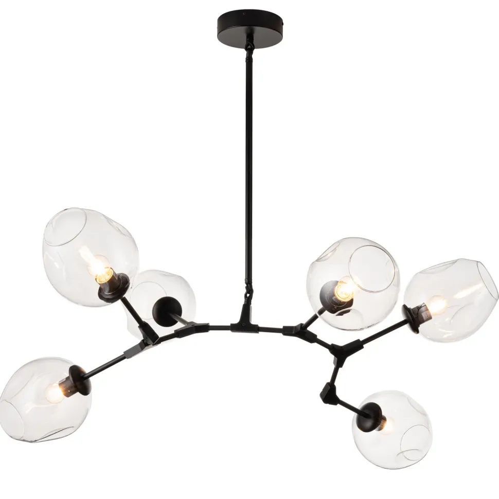 Ta oryginalna konstrukcja o sześciu szklanych, bursztynowych kloszach, pozwala osiągać niebanalne aranżacje, dając rozproszone światło w efektowny sposób.