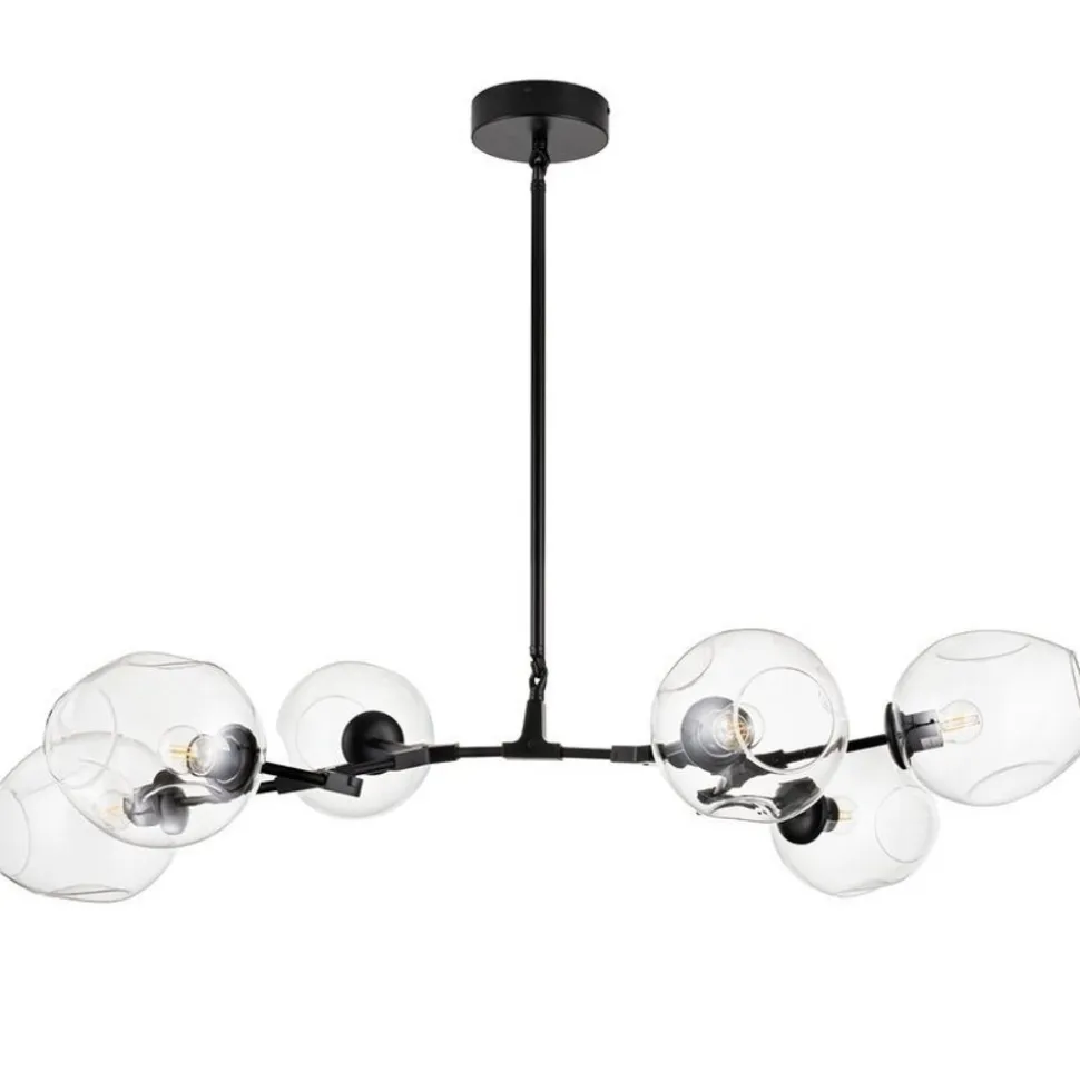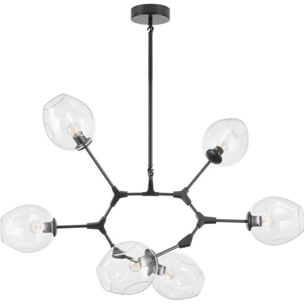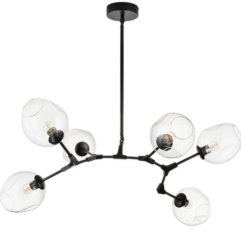 Ta oryginalna konstrukcja o sześciu szklanych, transparentnych kloszach, pozwala osiągać niebanalne aranżacje, dając rozproszone światło w efektowny sposób.